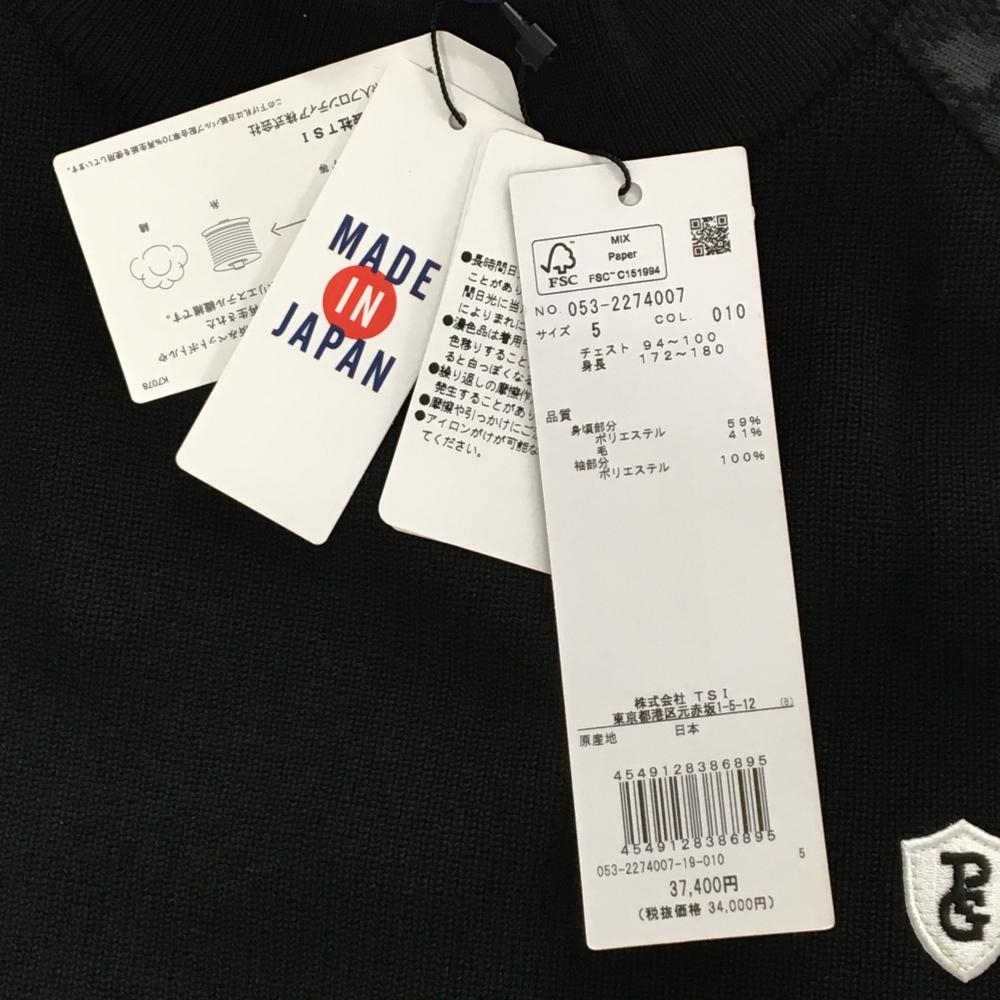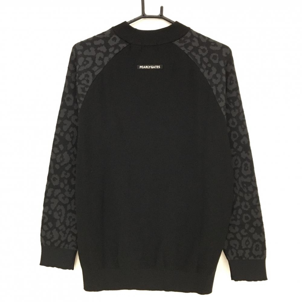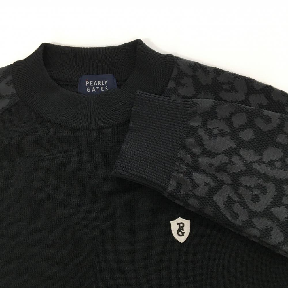 【新品】パーリーゲイツ セーター 黒 袖レオパード ウール混 胸ロゴ ニット メンズ 5(L) ゴルフウェア PEARLY GATES