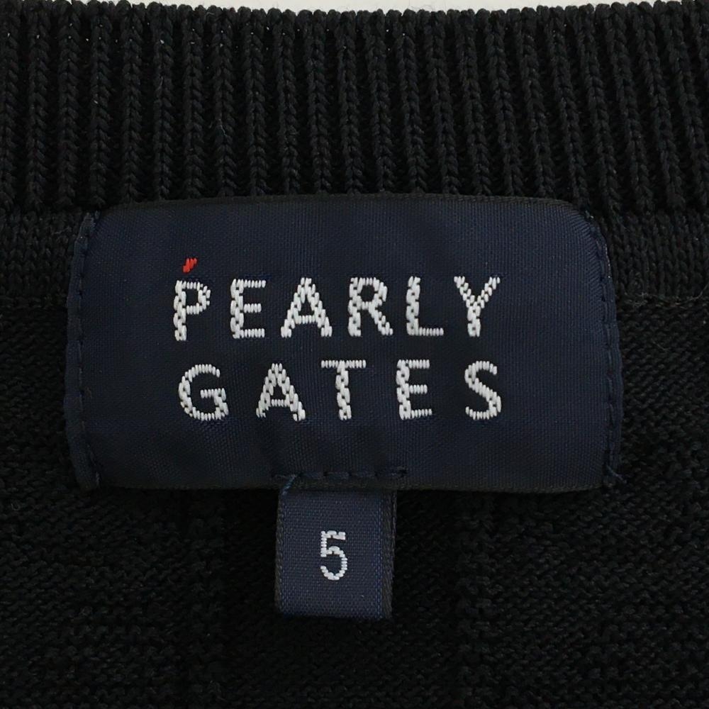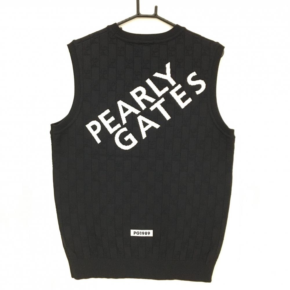 【超美品】パーリーゲイツ ニットベスト ダークネイビー 総柄 ロゴ白 Vネック メンズ 5(L) ゴルフウェア 2023年モデル PEARLY GATES