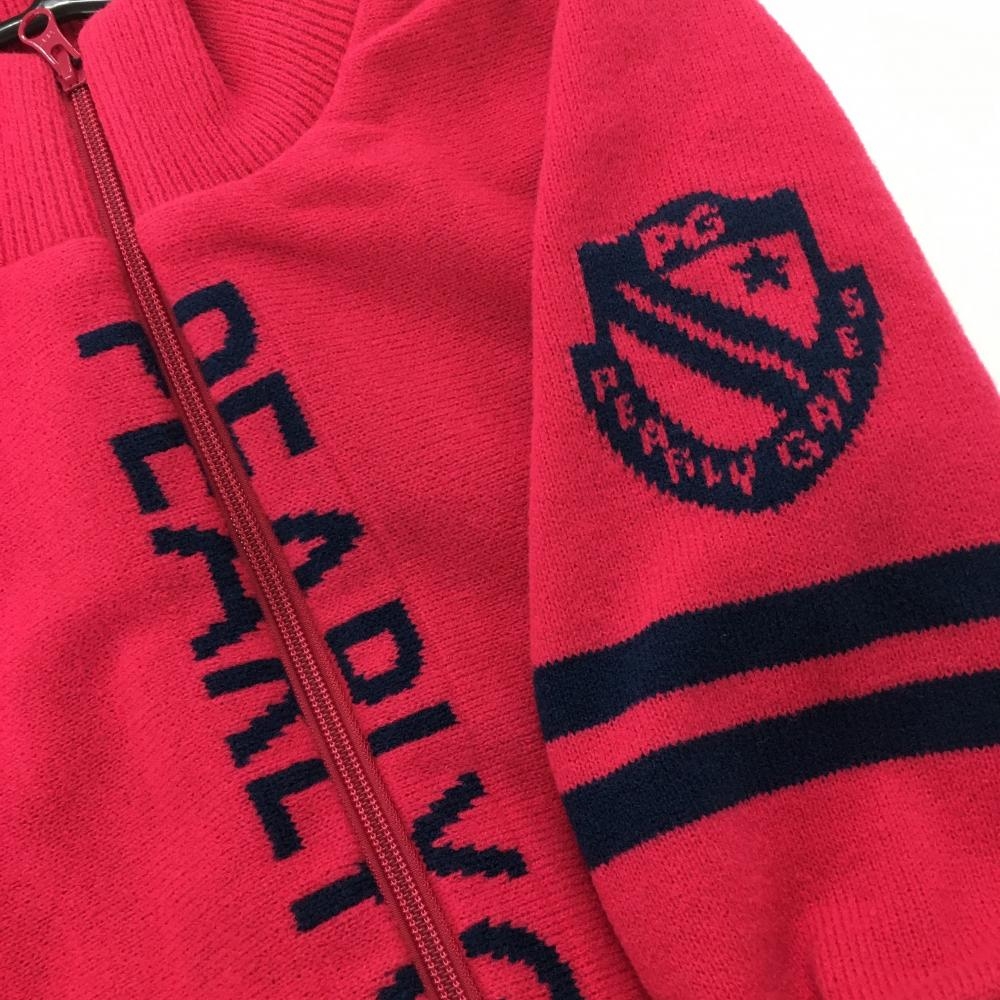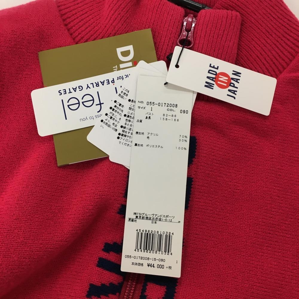 【新品】パーリーゲイツ ニットジャケット ピンク×ネイビー 裏地付き ジップロゴライン レディース 1(M) ゴルフウェア PEARLY GATES