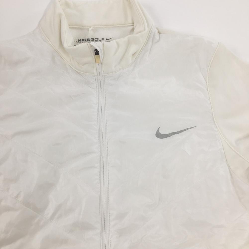 ナイキゴルフ 切替中綿ジャケット 白×アイボリー 前身頃中綿 裏微起毛 ロゴプリント レディース L ゴルフウェア NIKE