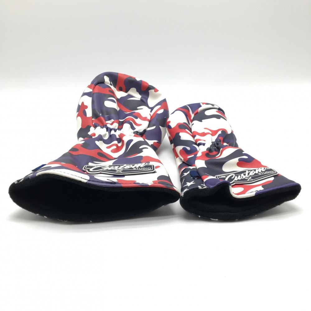 【美品】ブラッククローバー ヘッドカバー2点セット(DR UT) 白×レッド カモフラ 星 迷彩ゴルフ BLACK CLOVER