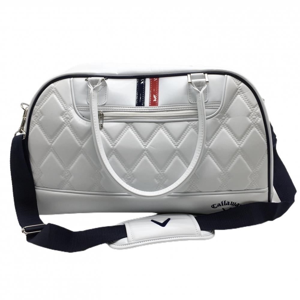 【美品】キャロウェイ 2WAYビッグボストンバッグ 白 一部トリコロール 内外ポケット付 ショルダーストラップ着脱可ゴルフ Callaway