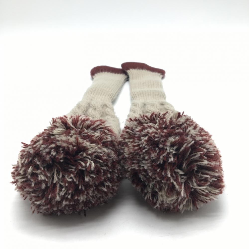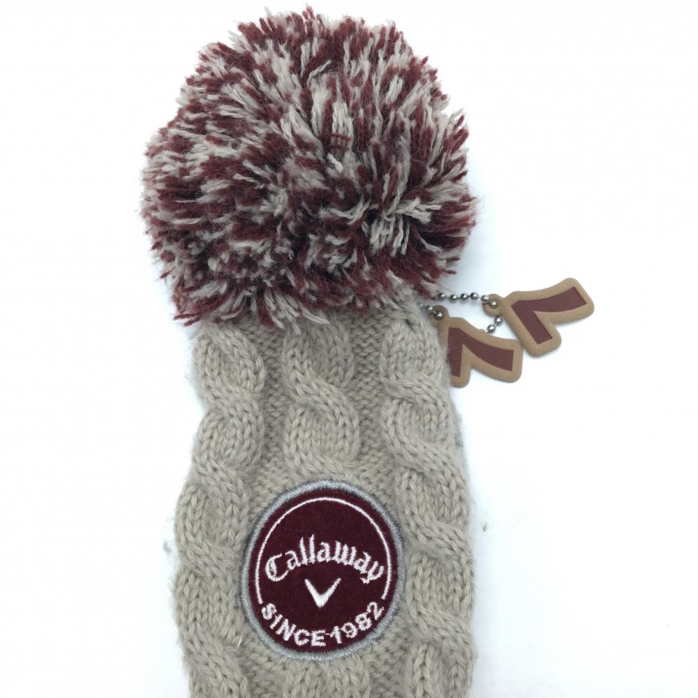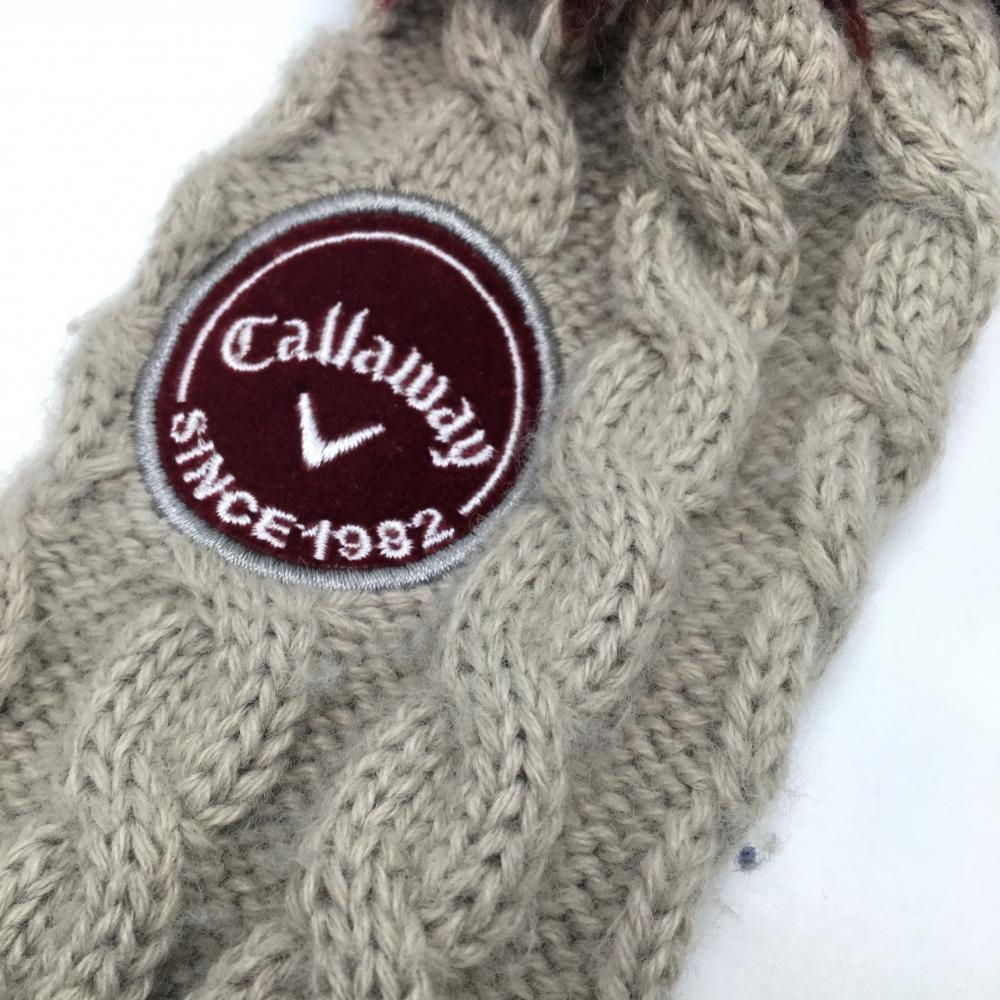 キャロウェイ ニットヘッドカバー2点セット(FW) グレージュ×ブラウン ボンボン付きゴルフ Callaway