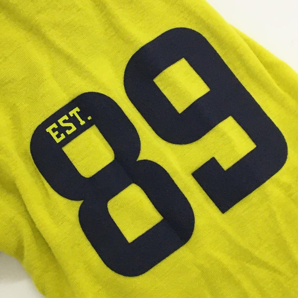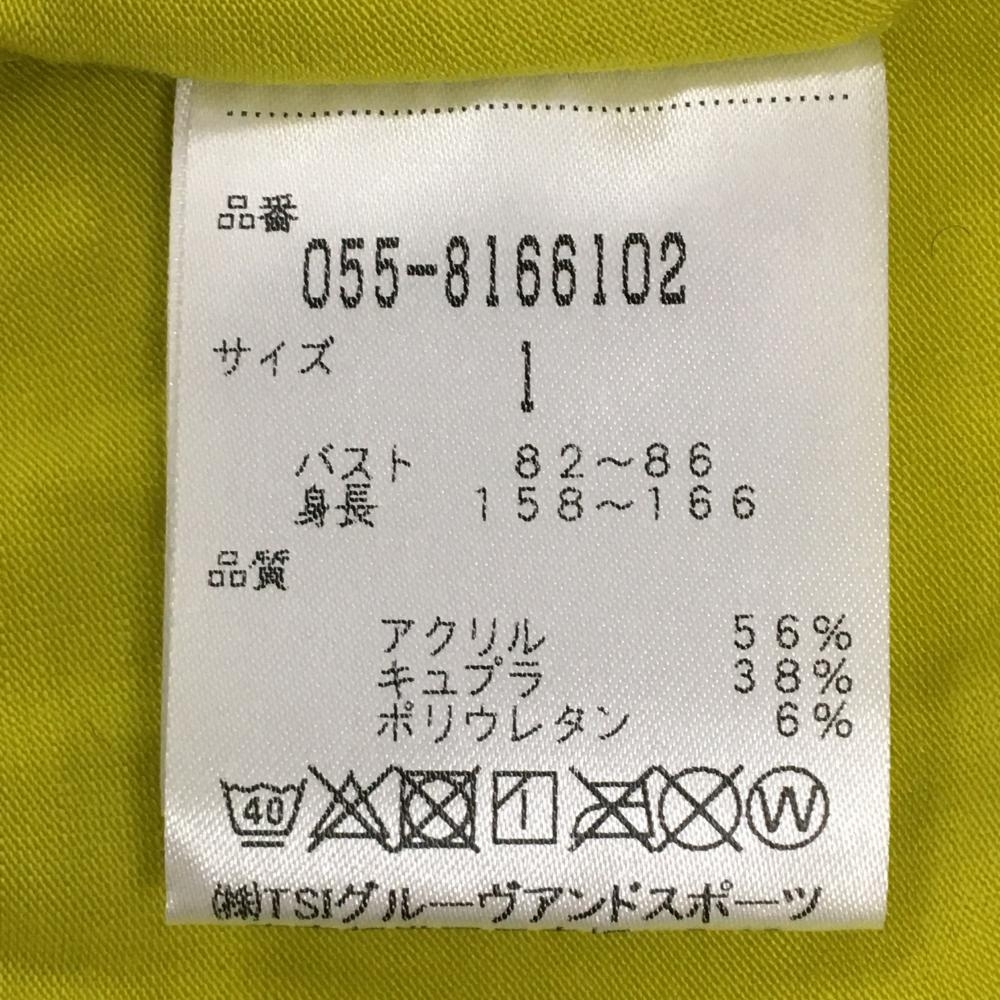 【美品】パーリーゲイツ 長袖ハイネックシャツ ライムイエロー×ネイビー ロゴプリント レディース 1(M) ゴルフウェア PEARLY GATES