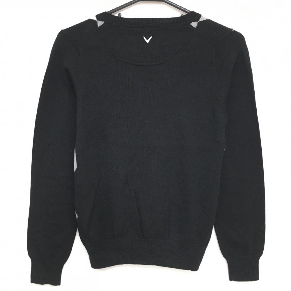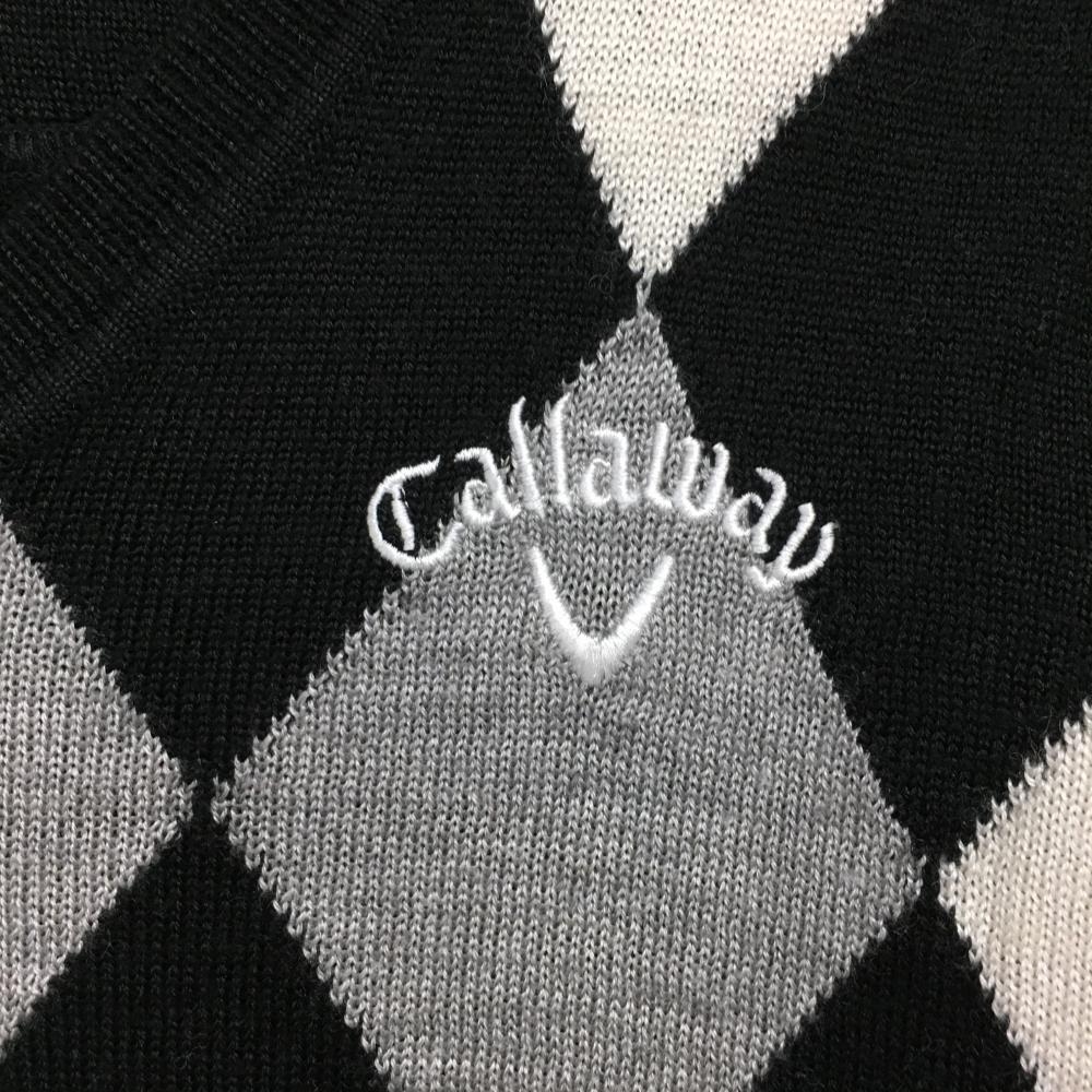 キャロウェイ セーター 黒×グレー ダイヤ柄 ウール混 ニット レディース M ゴルフウェア Callaway