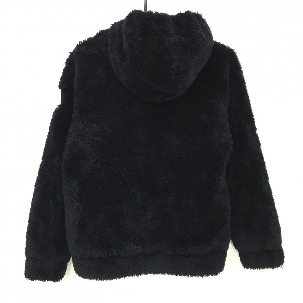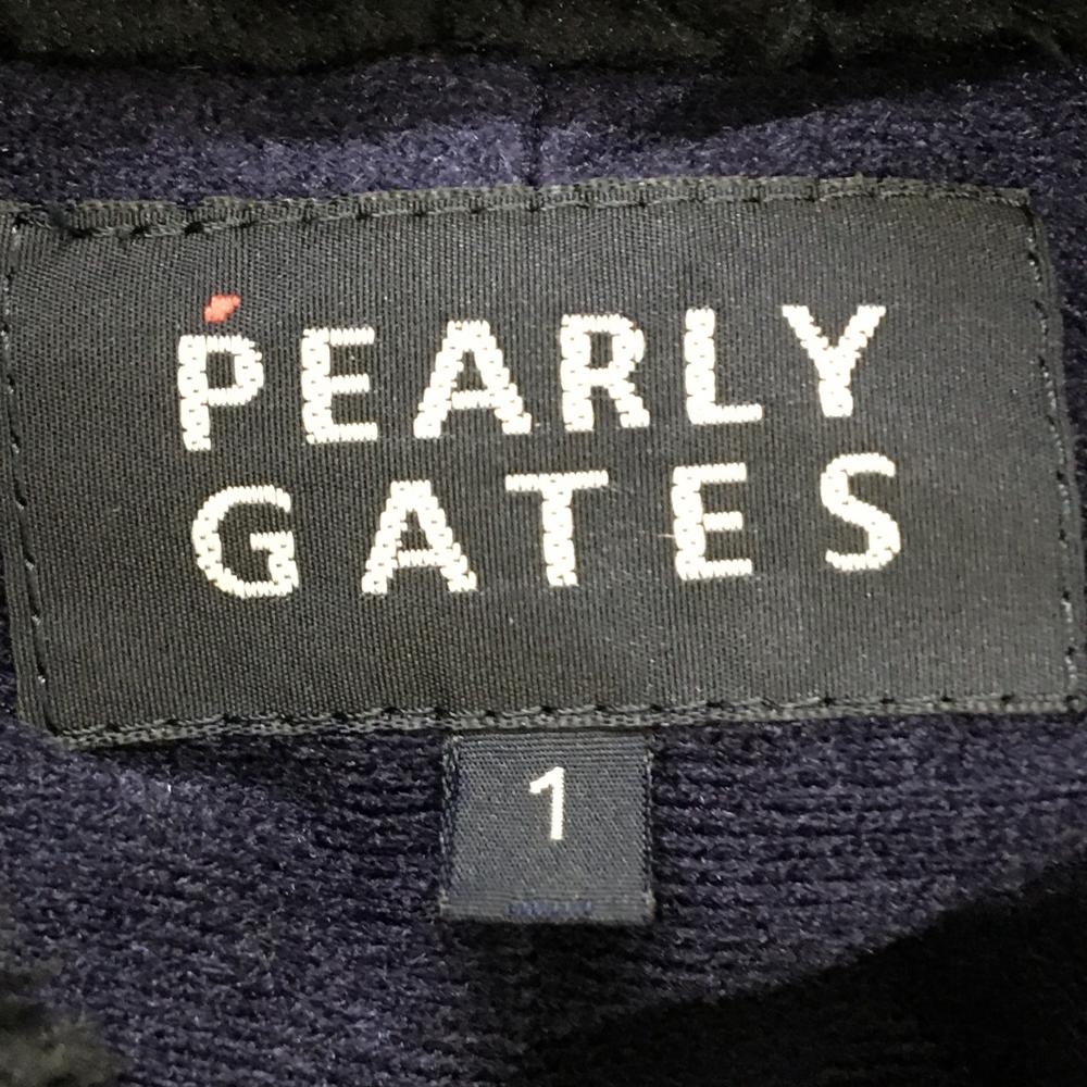 【美品】パーリーゲイツ ボアジップパーカー ダークネイビー ワッペン 裏地微起毛 ブルゾン レディース 1(M) ゴルフウェア PEARLY GATES