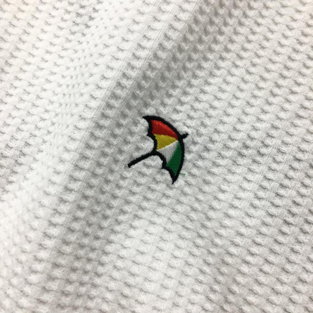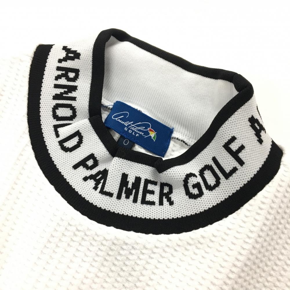 【超美品】アーノルドパーマーゴルフ 長袖ハイネックシャツ 白×黒 ワッフル生地 ネックロゴ レディース O(XL) ゴルフウェア Arnold Palmer