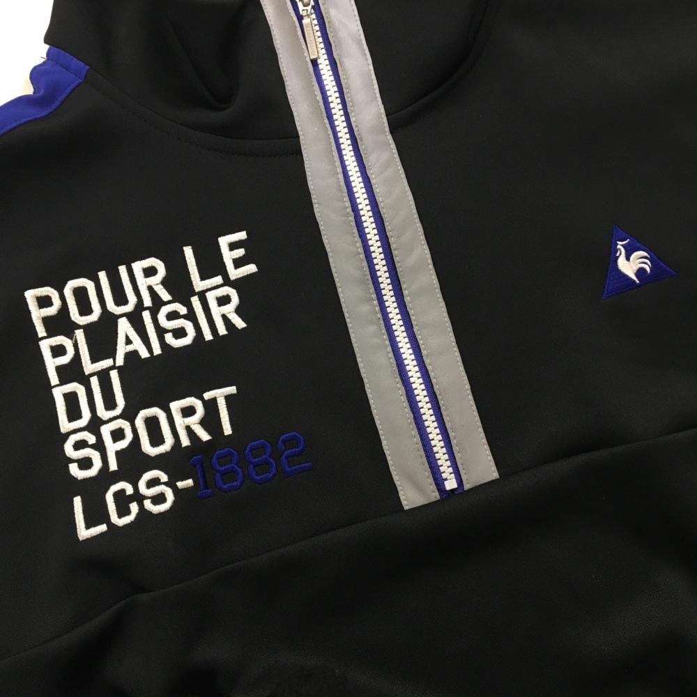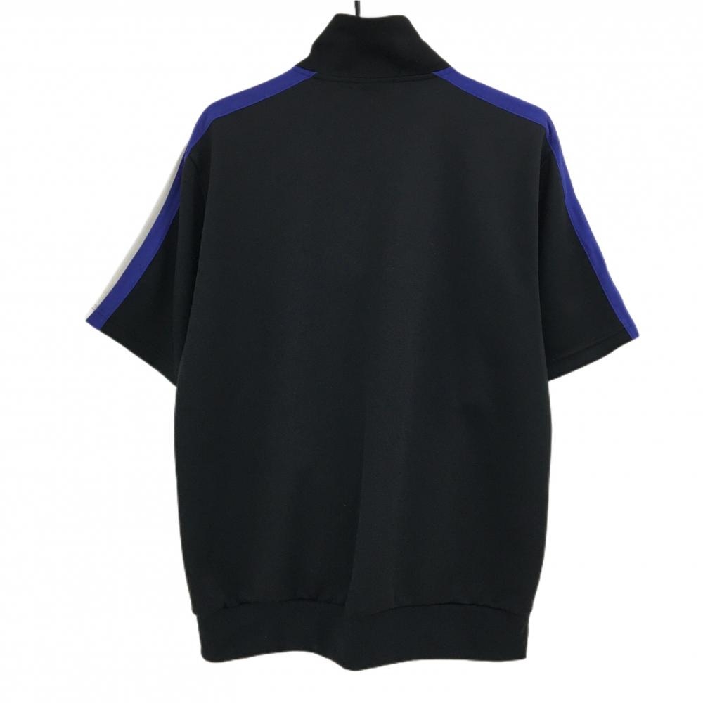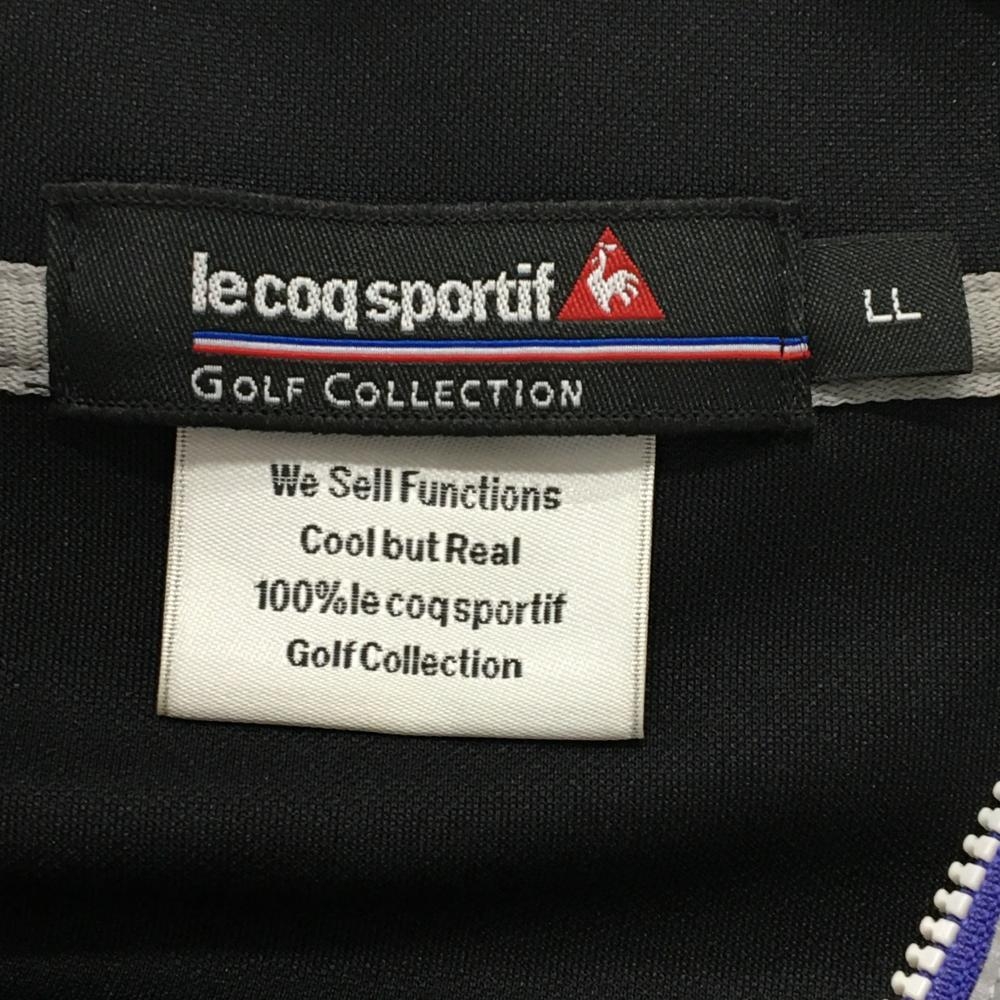 【超美品】ルコックゴルフ 半袖ハイネックブルゾン 黒×ブルーパープル系 袖ライン ハーフジップ メンズ LL ゴルフウェア le coq sportif