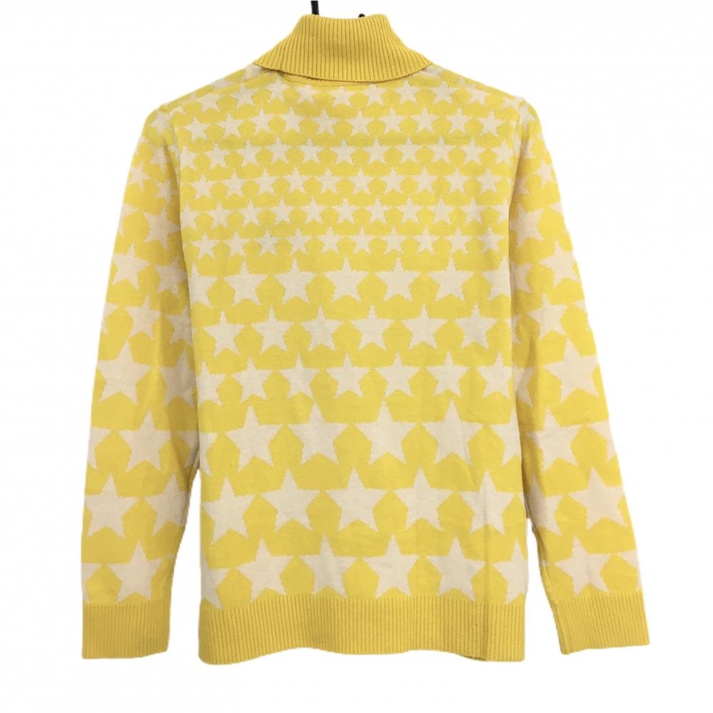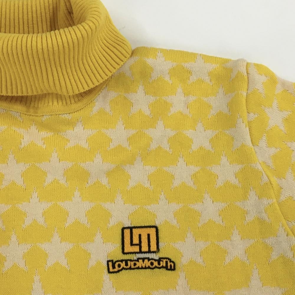 【美品】ラウドマウス タートルネックセーター イエロー×白 星総柄 ウール混 ニット レディース L ゴルフウェア LOUDMOUTH