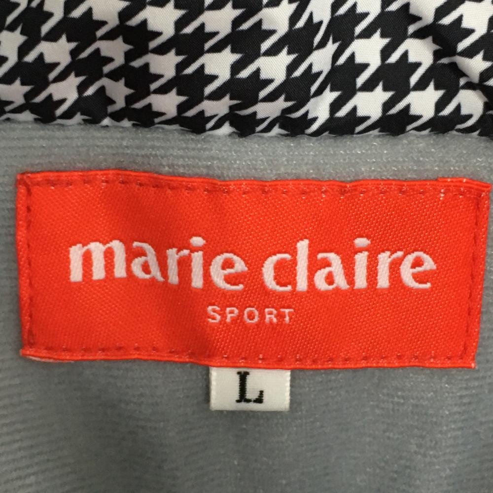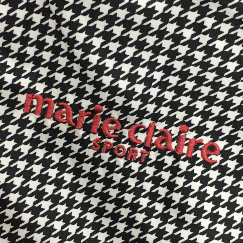 【超美品】マリクレールスポール 中綿ジャケット 黒×白 千鳥格子 ロゴ刺しゅう 裏起毛 レディース L ゴルフウェア marie claire