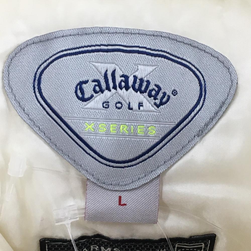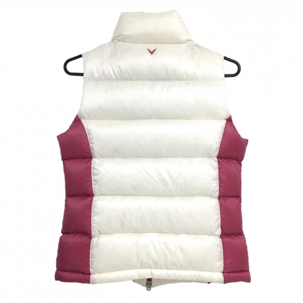 キャロウェイ ダウンベスト 白×ピンク ロゴ刺しゅう 裾ドローコード レディース L ゴルフウェア Callaway
