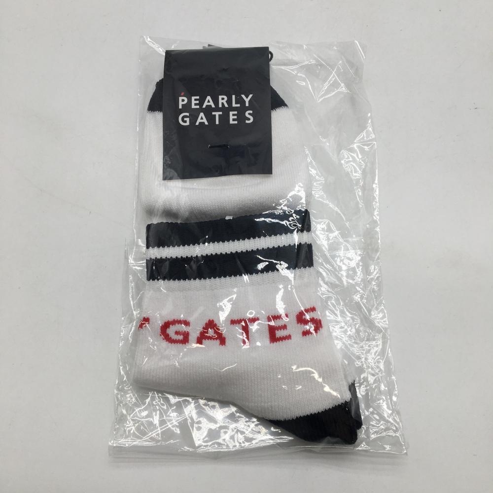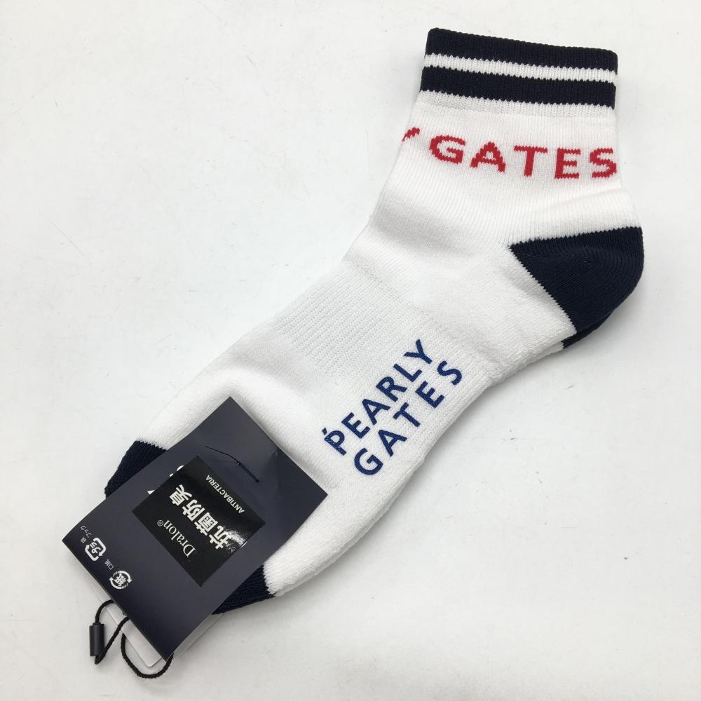 【新品】パーリーゲイツ ソックス 白×ネイビー ロゴレッド レディース FR 22-24 ゴルフウェア PEARLY GATES