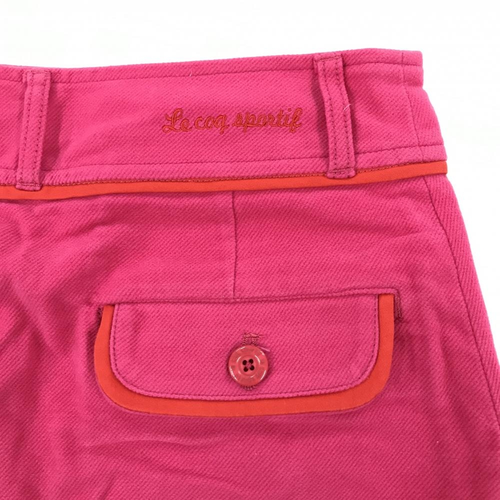 【美品】ルコックゴルフ コーデュロイスカート ピンク×レッド ウエストダブルボタン レディース 7 ゴルフウェア le coq sportif