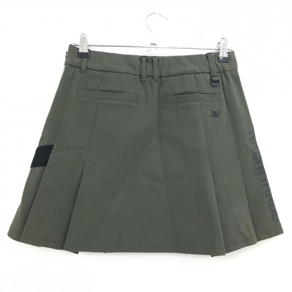 ハチヤーズ スカート カーキ×黒 サイドロゴ 裾一部プリーツ レディース L ゴルフウェア 8YARDS