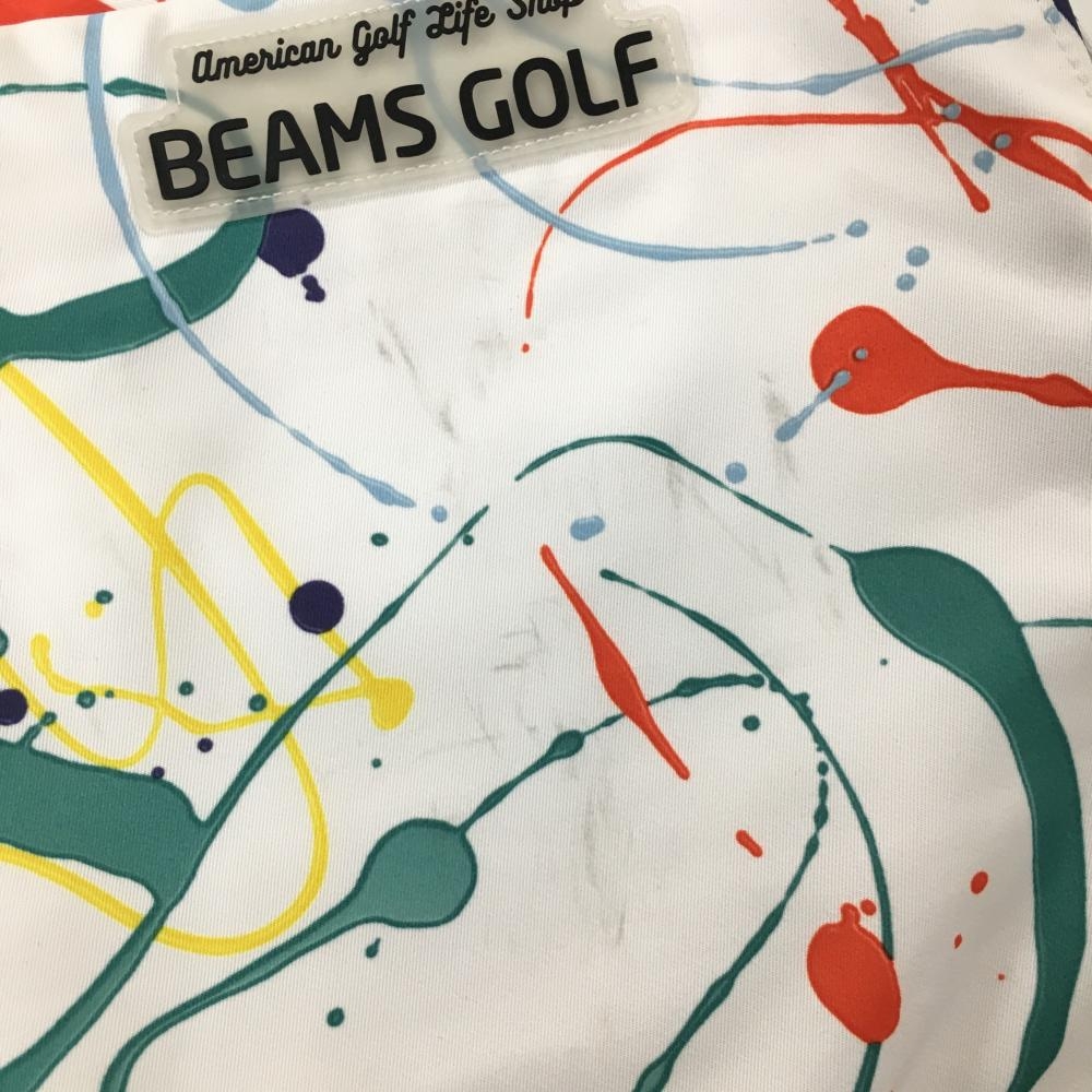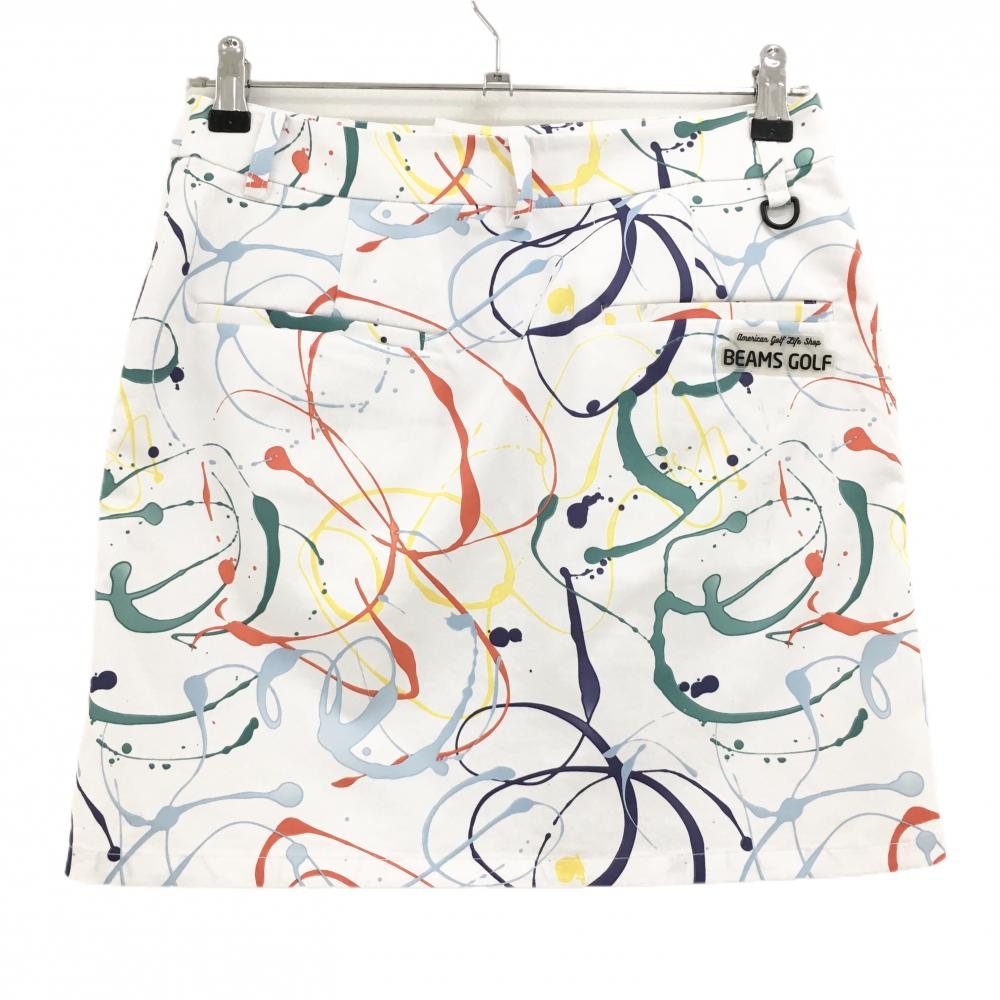 ビームスゴルフ スカート 白×マルチカラー ペイント総柄 ロゴ レディース M ゴルフウェア BEAMS GOLF