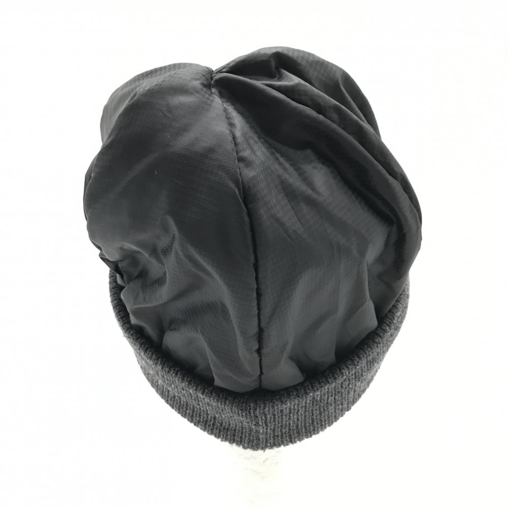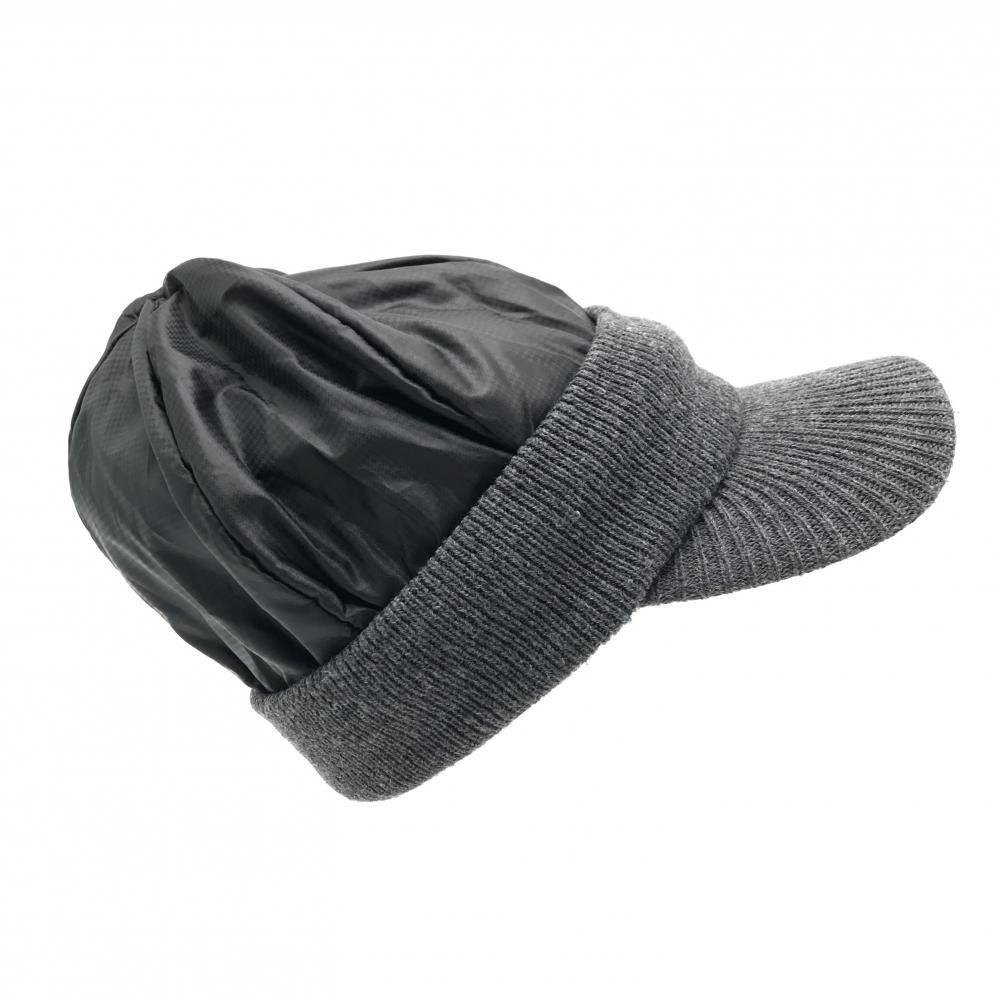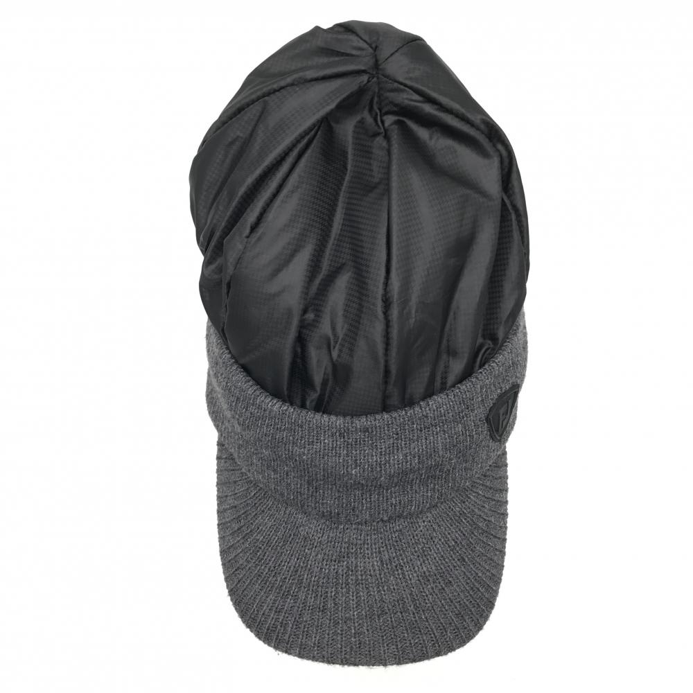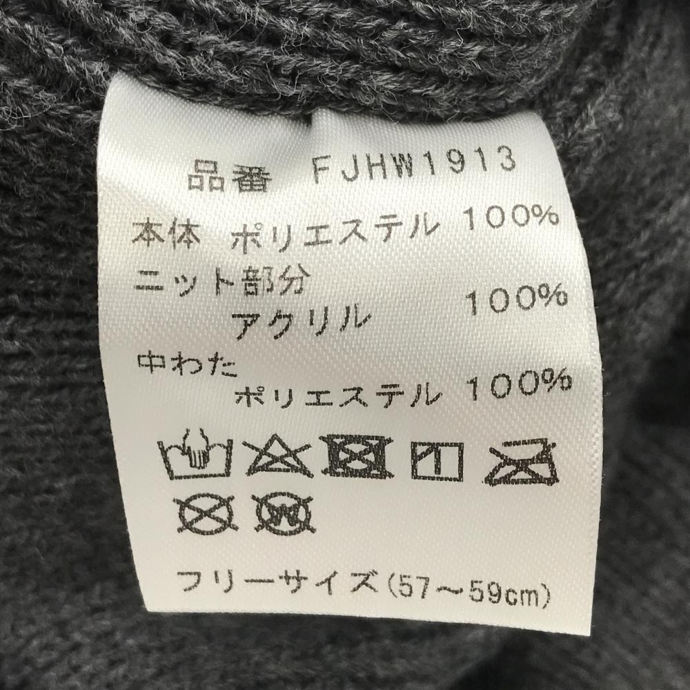 【美品】フットジョイ つば付き中綿ニット帽 杢ダークグレー×黒 一部千鳥格子地模様 ロゴ フリーサイズ(57-59cm) ゴルフウェア FootJoy