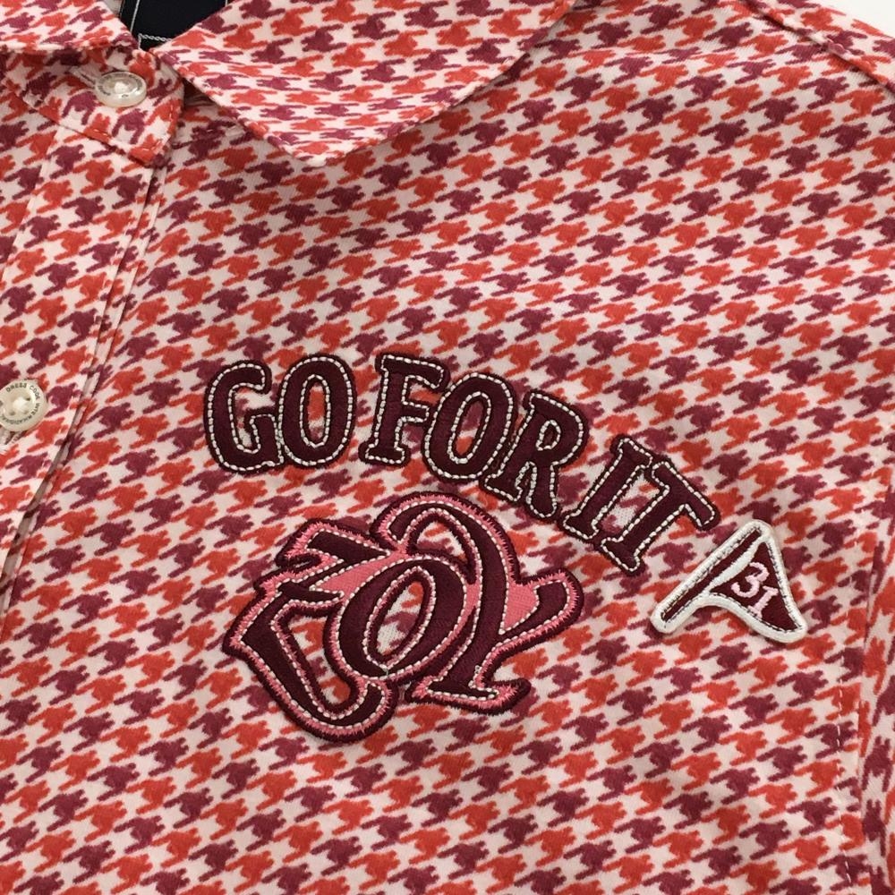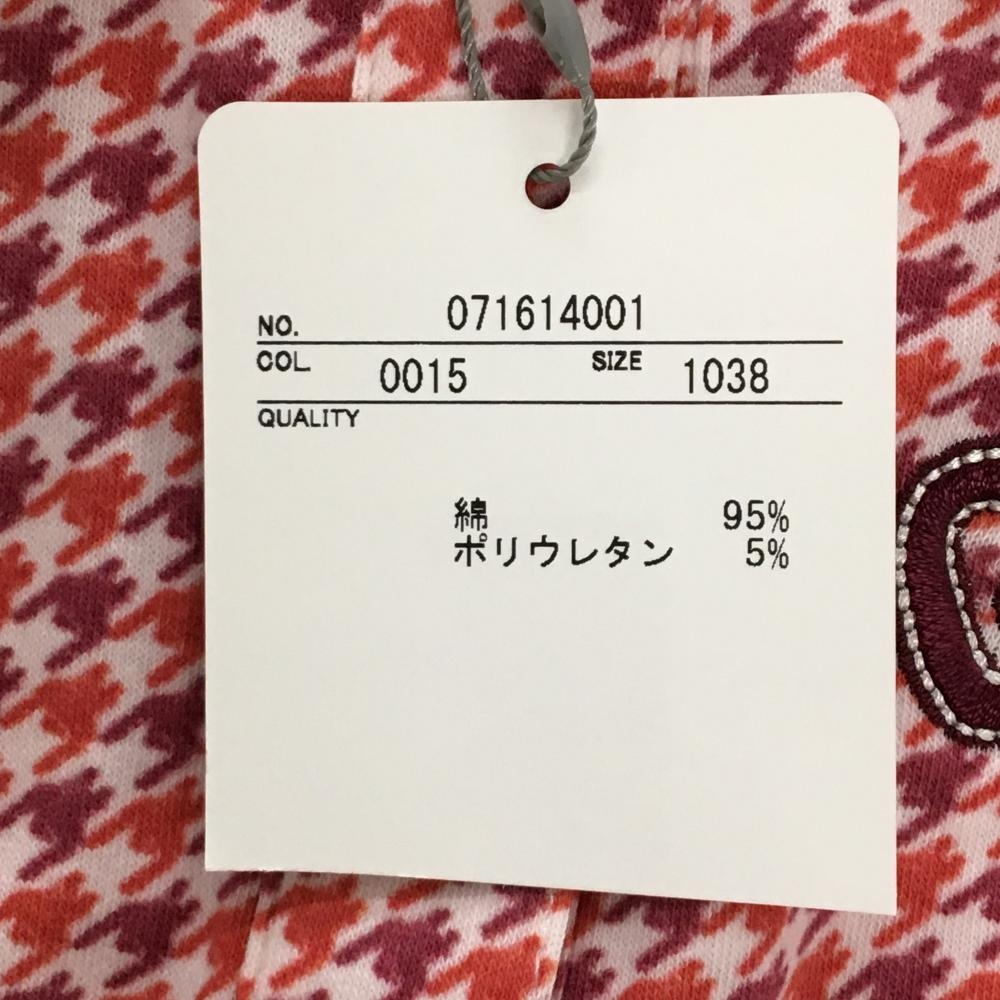 【新品】ゾーイ 長袖ポロシャツ レッド×白 千鳥格子 ロゴ刺しゅう レディース 38(M) ゴルフウェア ZOY