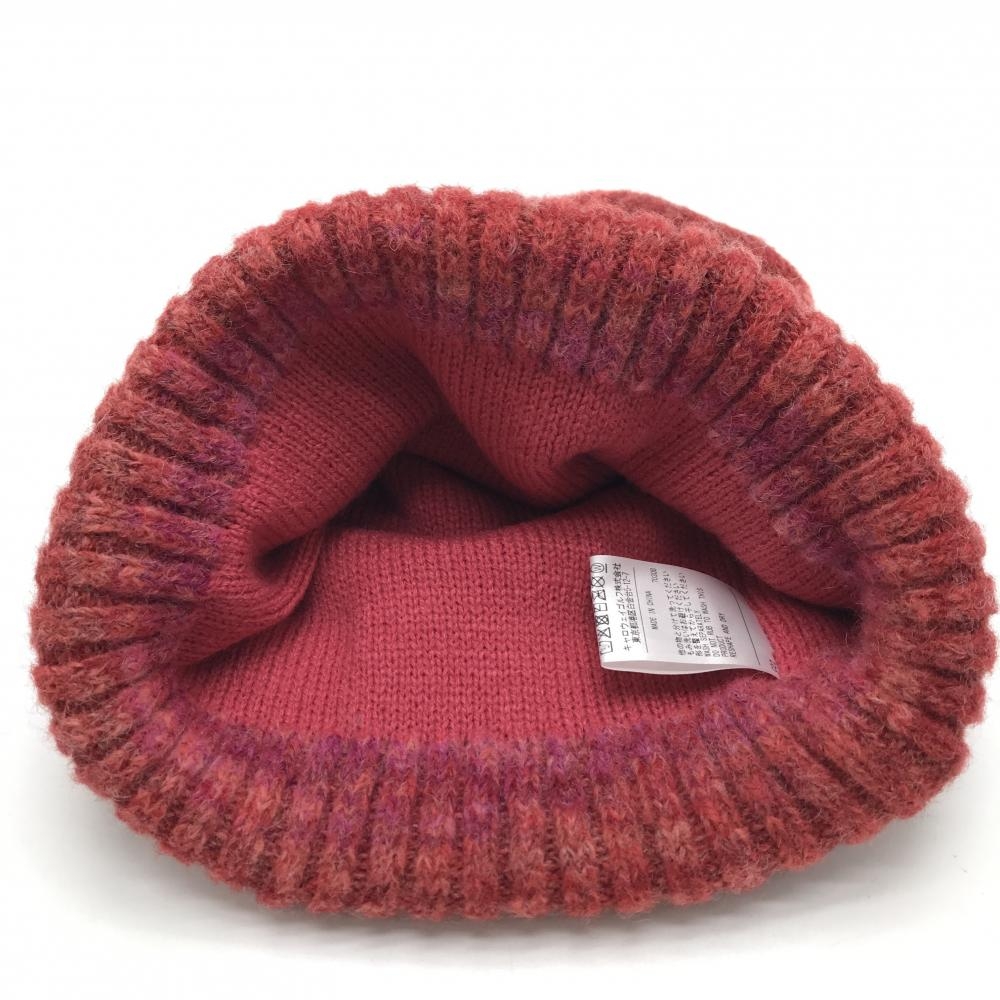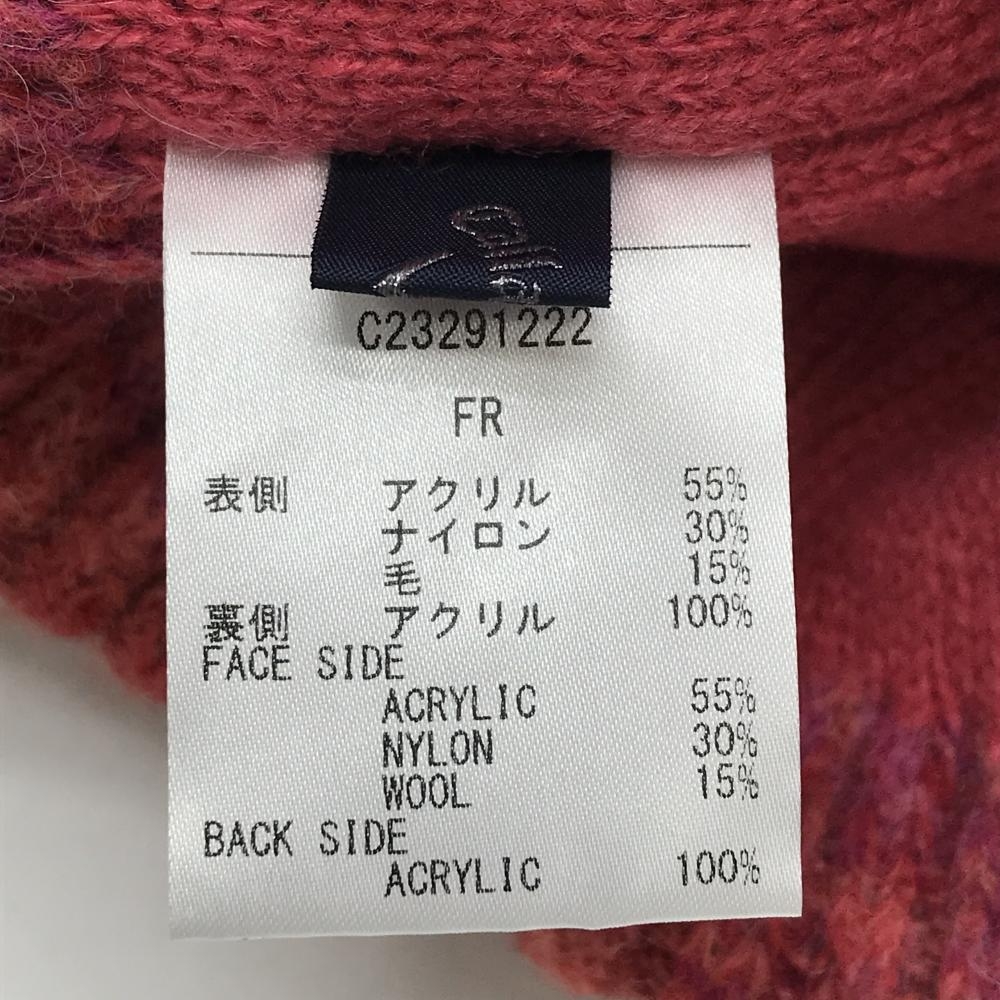 【超美品】キャロウェイ ニット帽 レッド×ピンク系 ウール混 ハート刺しゅう レディース FR ゴルフウェア Callaway