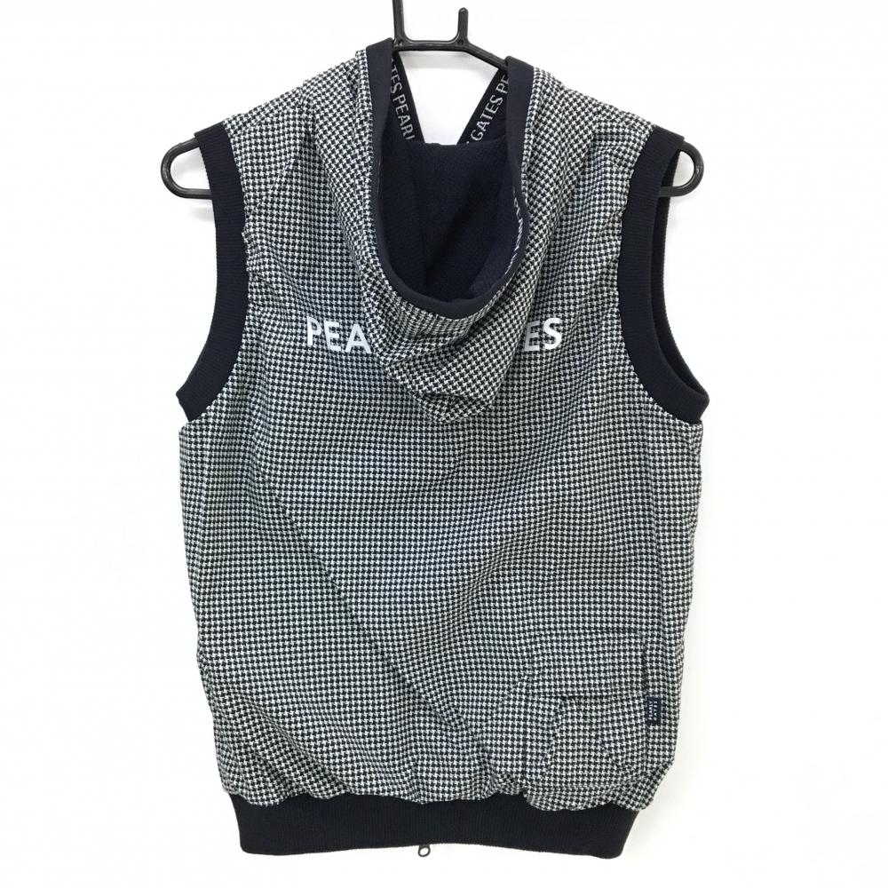 【超美品】パーリーゲイツ リバーシブルアウターベスト 黒×白 千鳥格子風 片面ニット レディース 1(M) ゴルフウェア PEARLY GATES