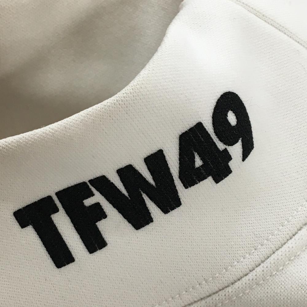 TFW49 長袖ハイネックシャツ 白 ネックロゴ 後ろ身頃裏起毛 ストレッチ メンズ S ゴルフウェア TFW49