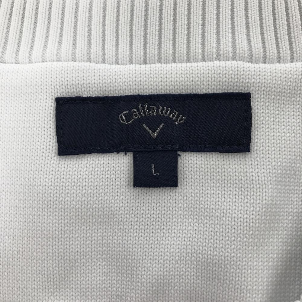 【超美品】キャロウェイ ニットベスト 白 ケーブル編み ロゴ黒 Vネック メンズ L ゴルフウェア Callaway