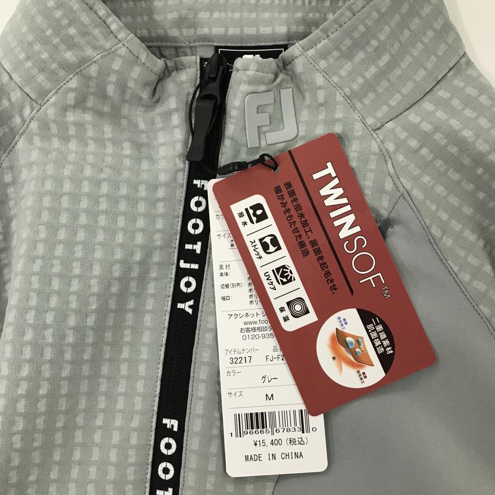 【新品】フットジョイ ブルゾン グレー 地模様 裏微起毛 ハーフジップ 薄手 裾ドローコード メンズ M ゴルフウェア 2024年モデル FootJoy