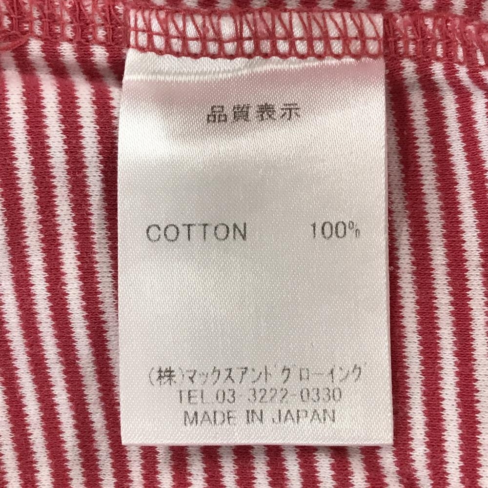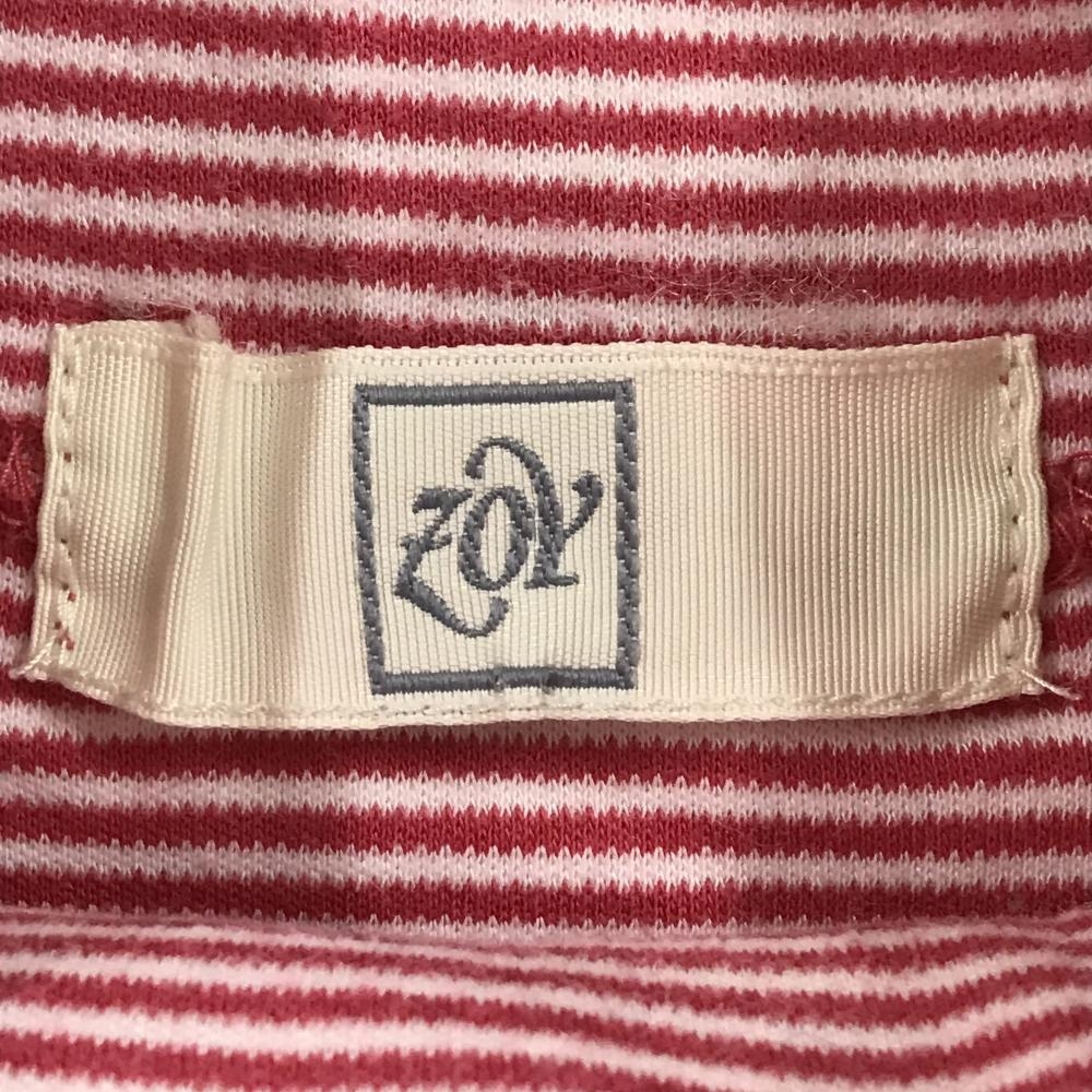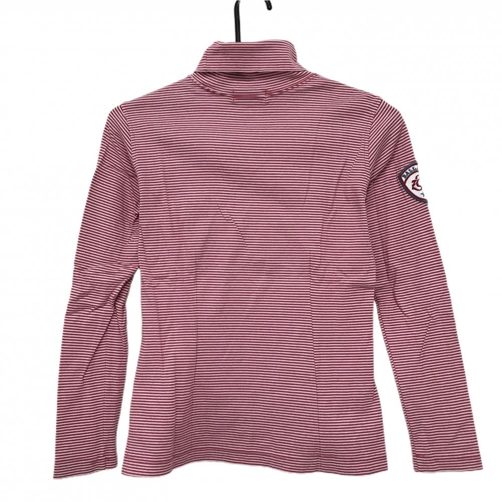 【美品】ゾーイ 長袖タートルネックシャツ レッドピンク系×白 細ボーダー コットン100% ハイネック レディース M ゴルフウェア ZOY