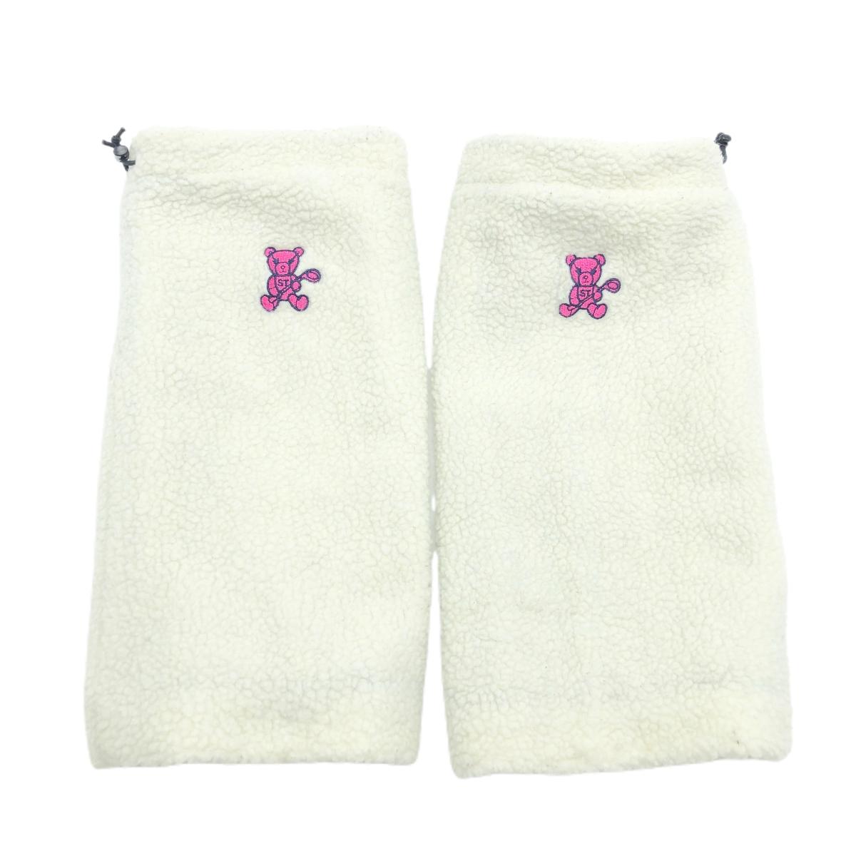 【美品】サマンサタバサ リバーシブルレッグウォーマー ネイビー×白 ボア ベア レディース ゴルフウェア Samantha Thavasa