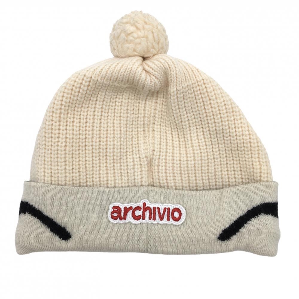 【美品】アルチビオ ニット帽 白×黒 サングラス ボンボン付 ゴルフウェア archivio