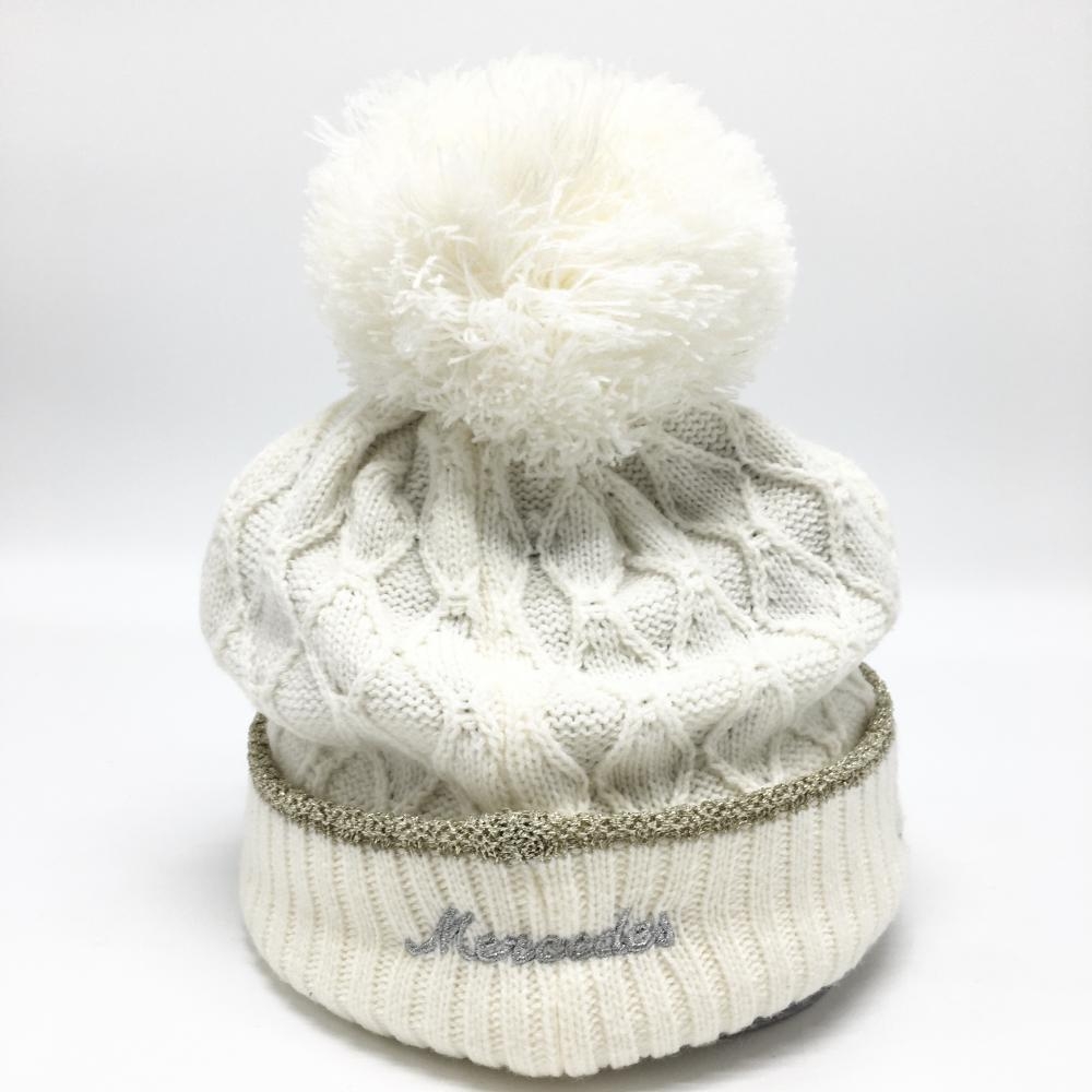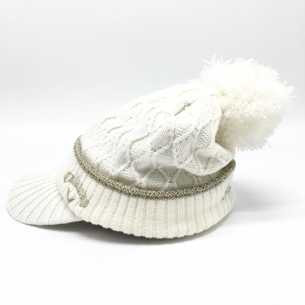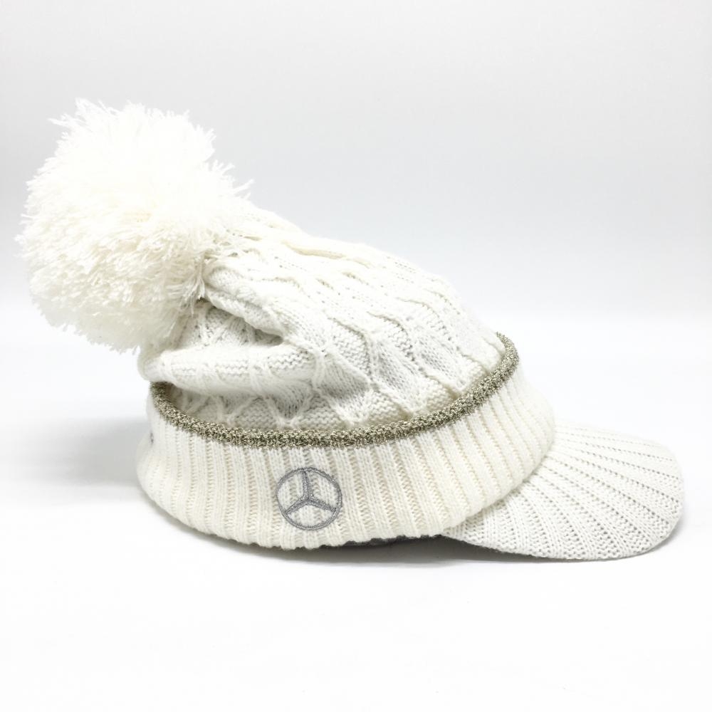 キャロウェイ つば付ニット帽 白×ゴールド メルセデスベンツ ボンボン付 FR ゴルフウェア Callaway