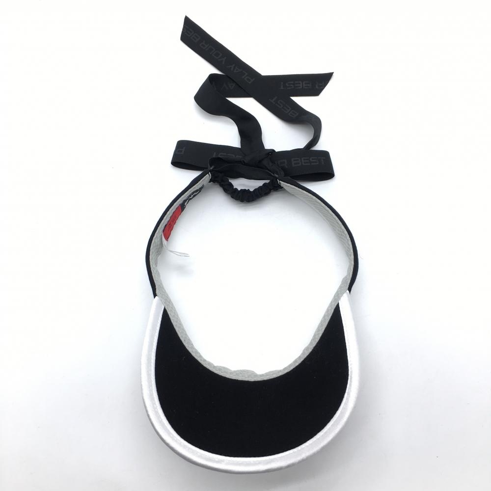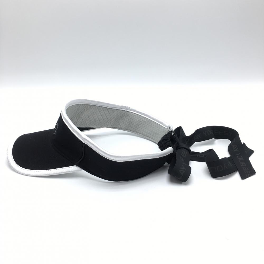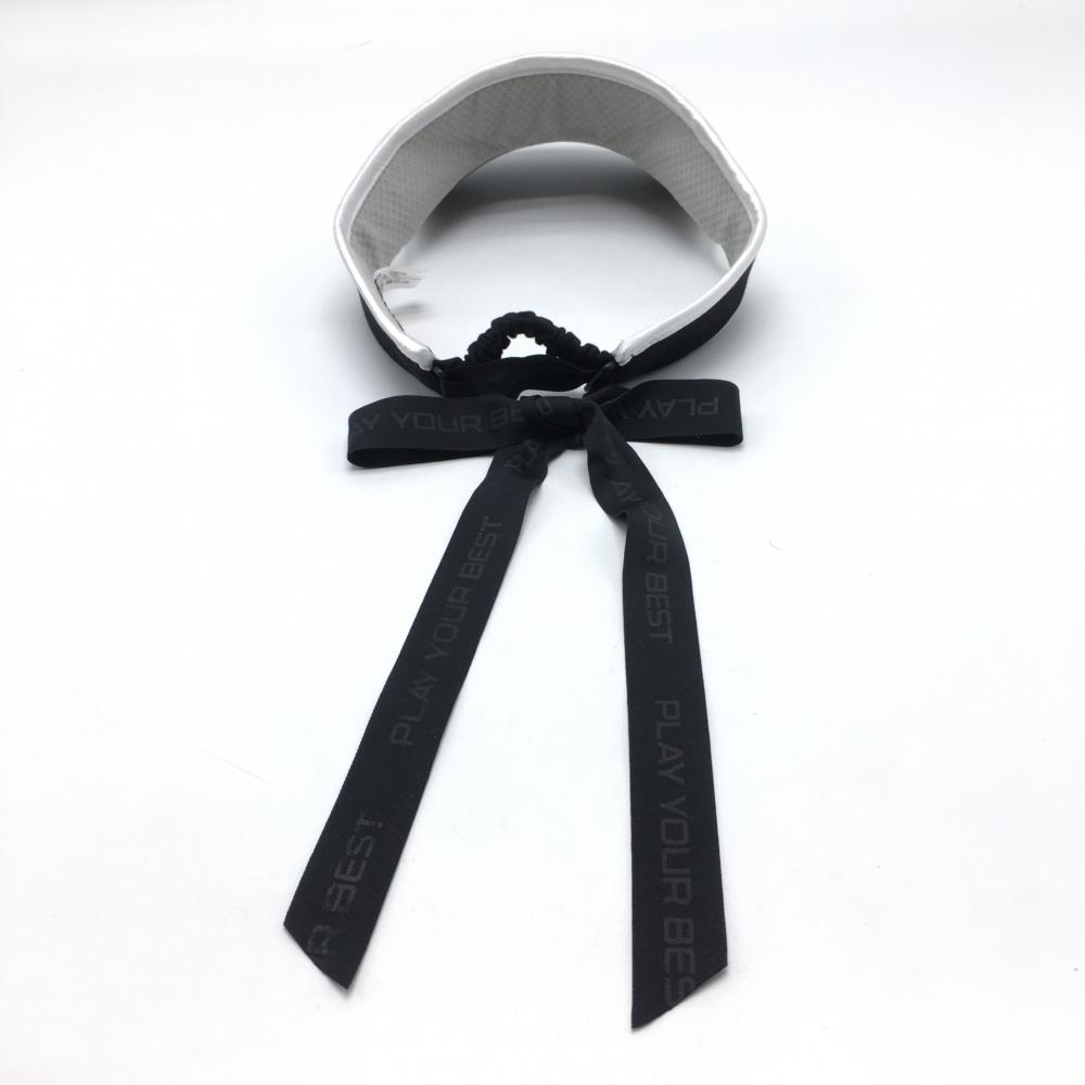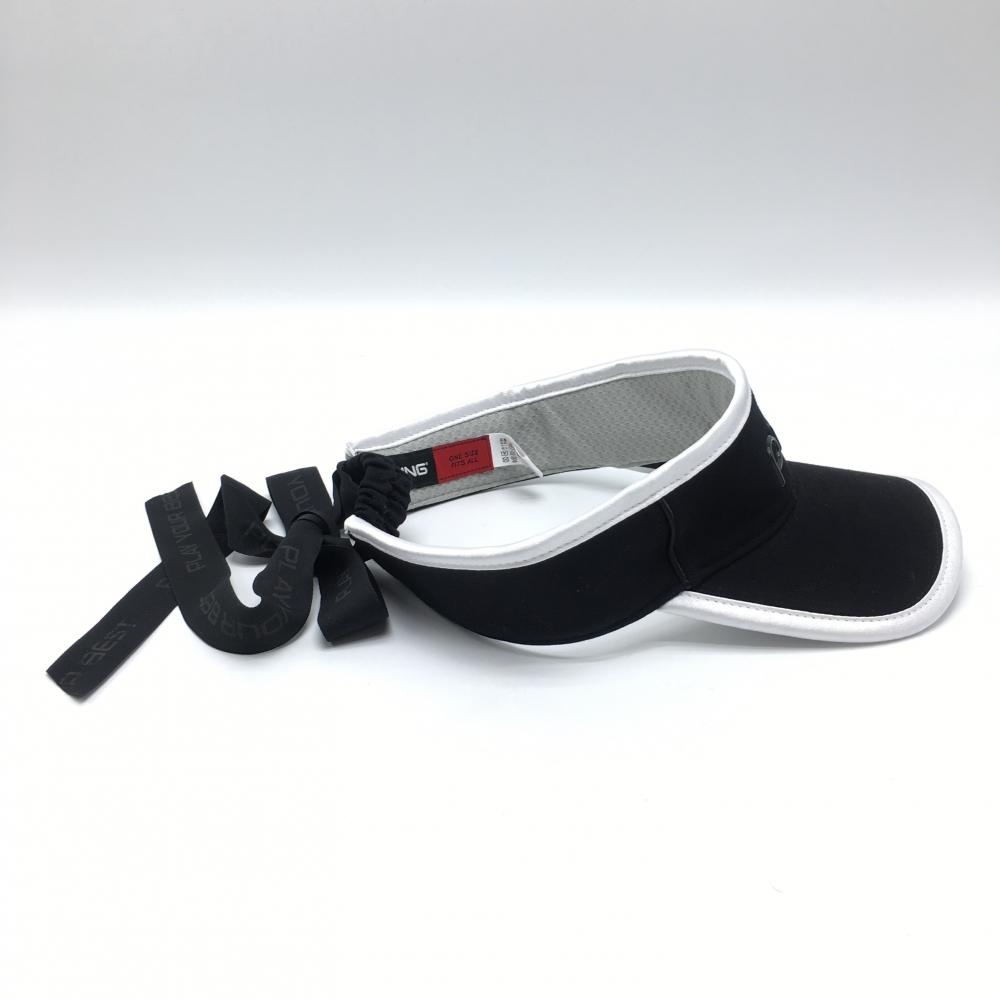 【超美品】ピン サンバイザー 黒×白 リボン レディース ONE SIZE FITS ALL ゴルフウェア PING