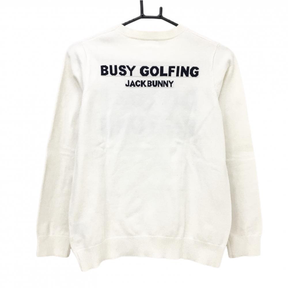 ジャックバニー セーター 白×ネイビー フロント英字 コットン混 ニット レディース 0(S) ゴルフウェア Jack Bunny
