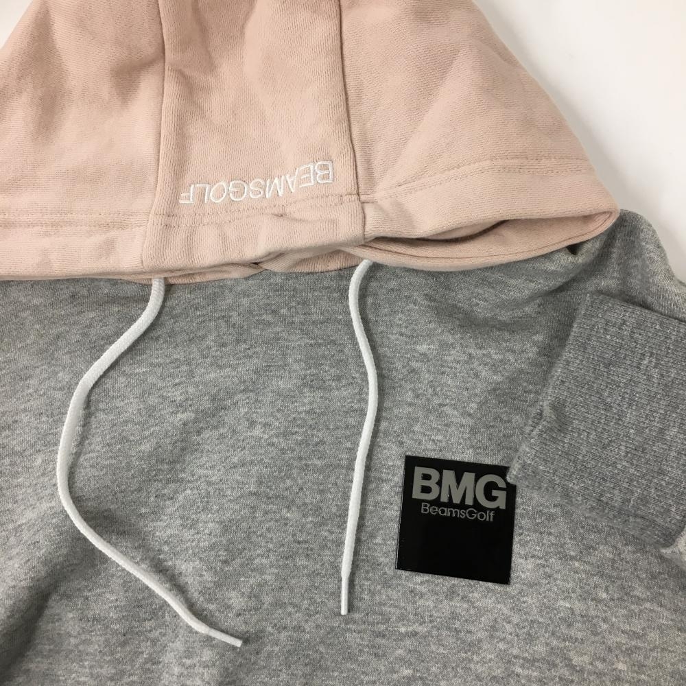 【超美品】ビームスゴルフ パーカー 杢グレー×ライトピンク フード・ポケット配色 裏毛スウェット レディース M ゴルフウェア BEAMS GOLF