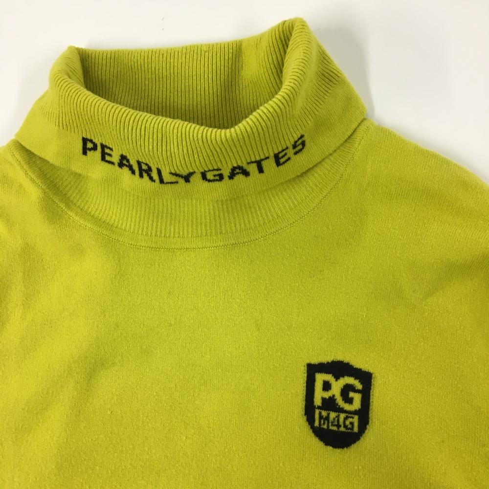 パーリーゲイツ タートルネックセーター マスタードイエロー×黒 ネックロゴ レディース 2(L) ゴルフウェア PEARLY GATES