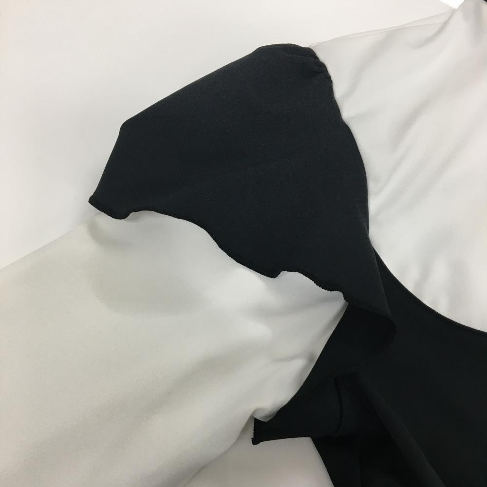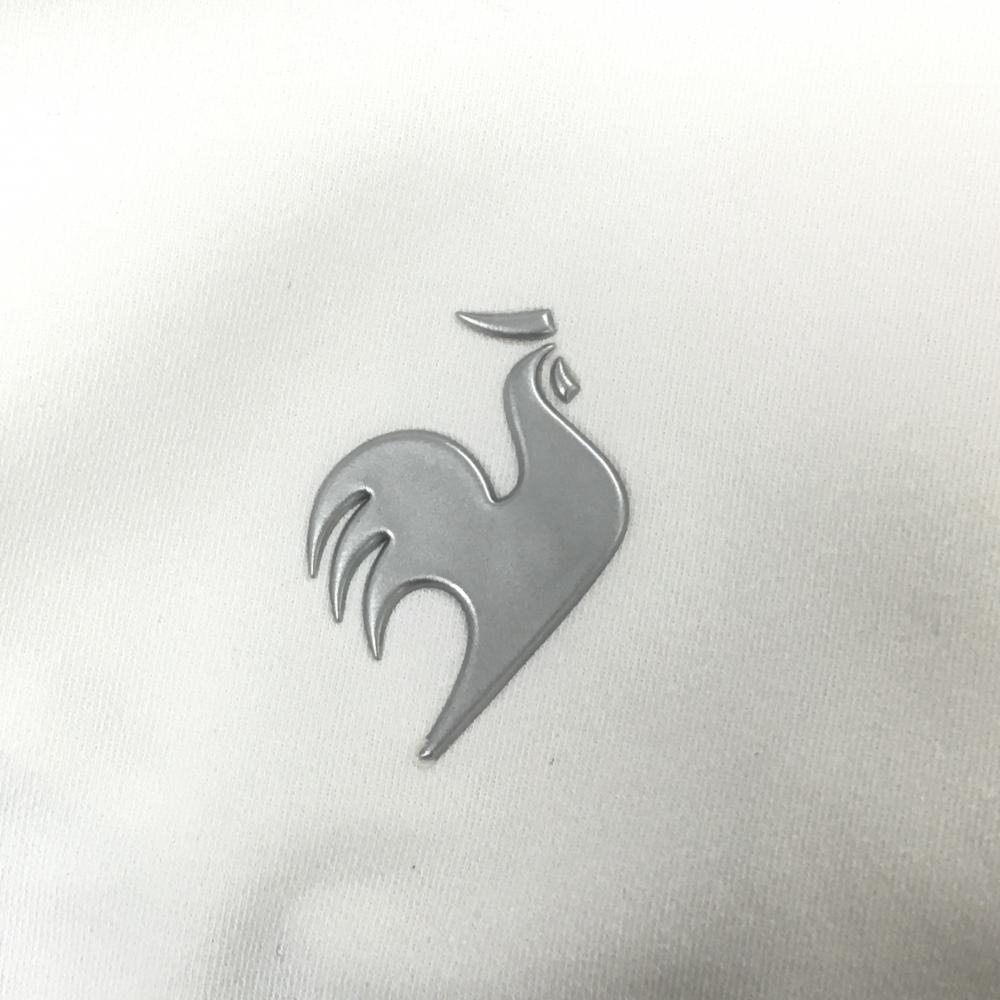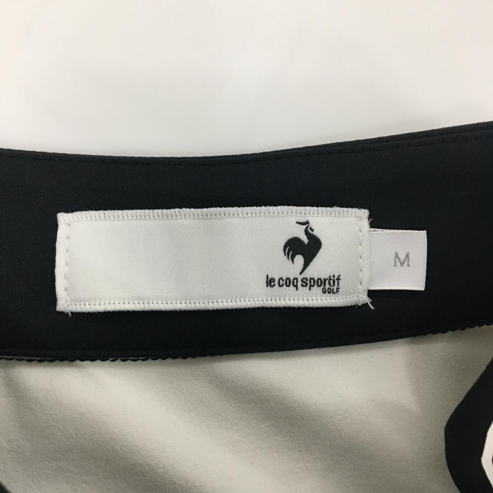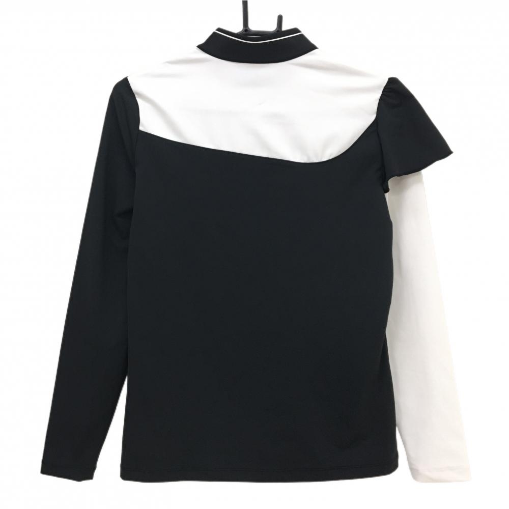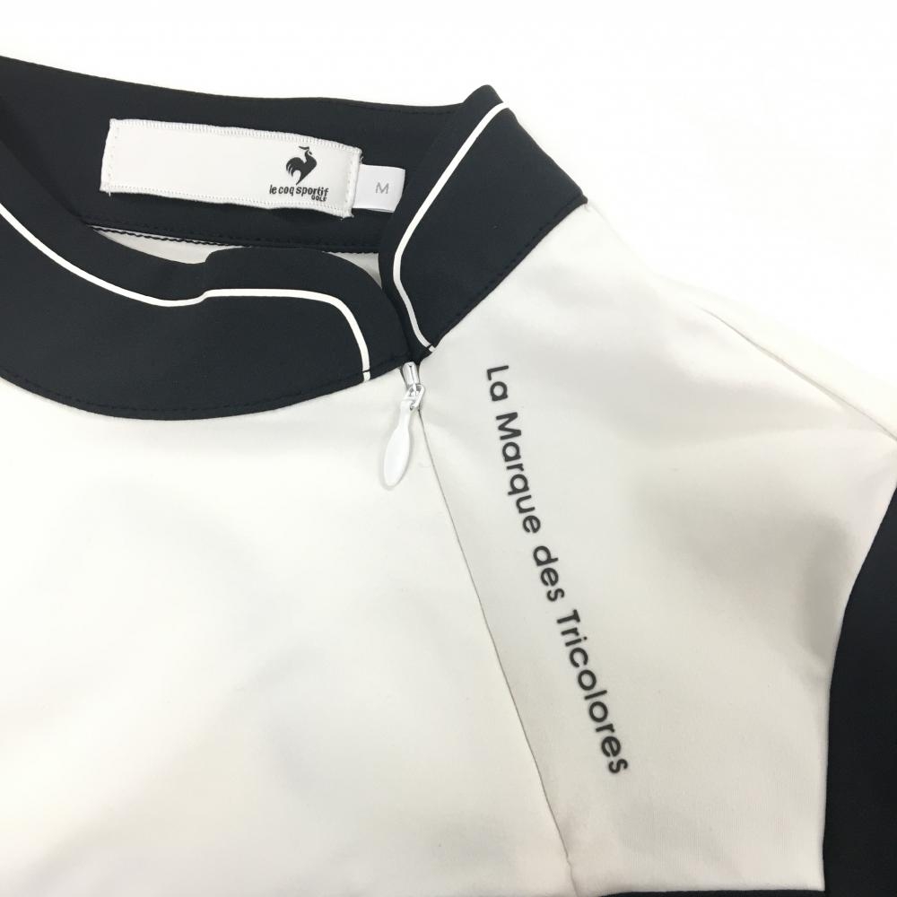 【超美品】ルコックゴルフ 長袖ハイネックシャツ 白×黒 斜めハーフジップ 袖一部フリル レディース M ゴルフウェア le coq sportif
