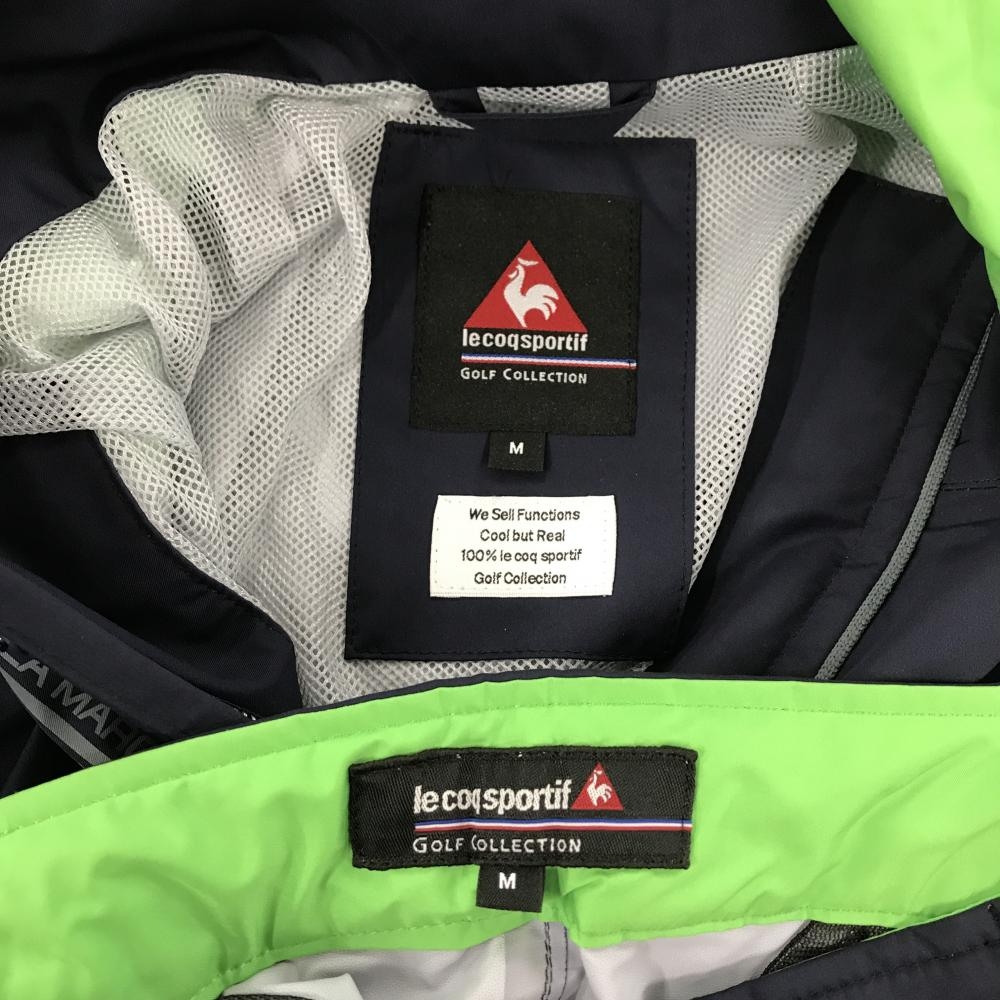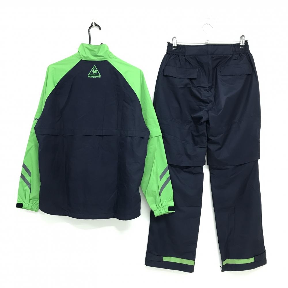 ルコックゴルフ レインウェア(2WAYジャケット×パンツ) ネイビー×ライトグリーン 裏地メッシュ メンズ M ゴルフウェア le coq sportif