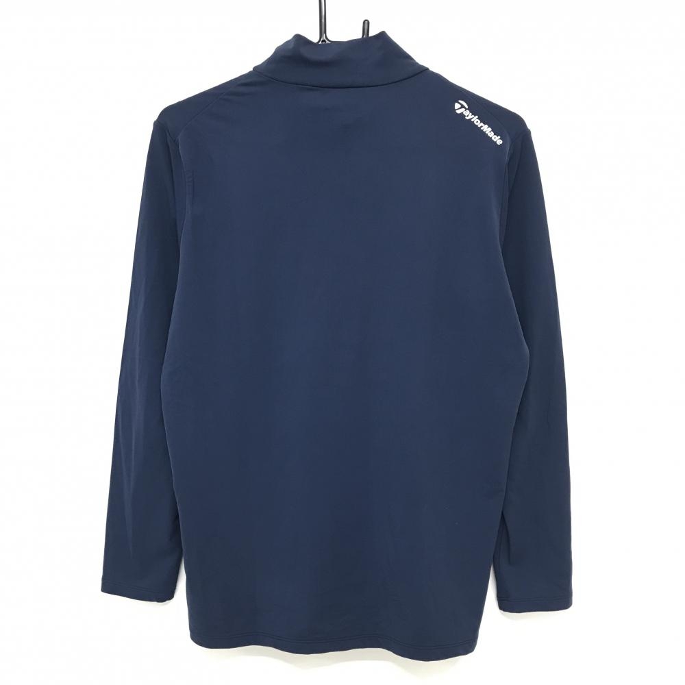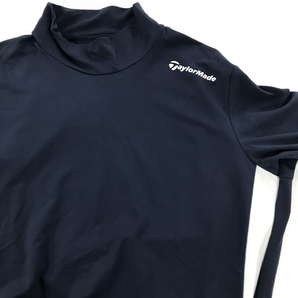 テーラーメイド 長袖ハイネックシャツ ネイビー×白 肩ロゴ 裏微起毛 メンズ M ゴルフウェア TaylorMade