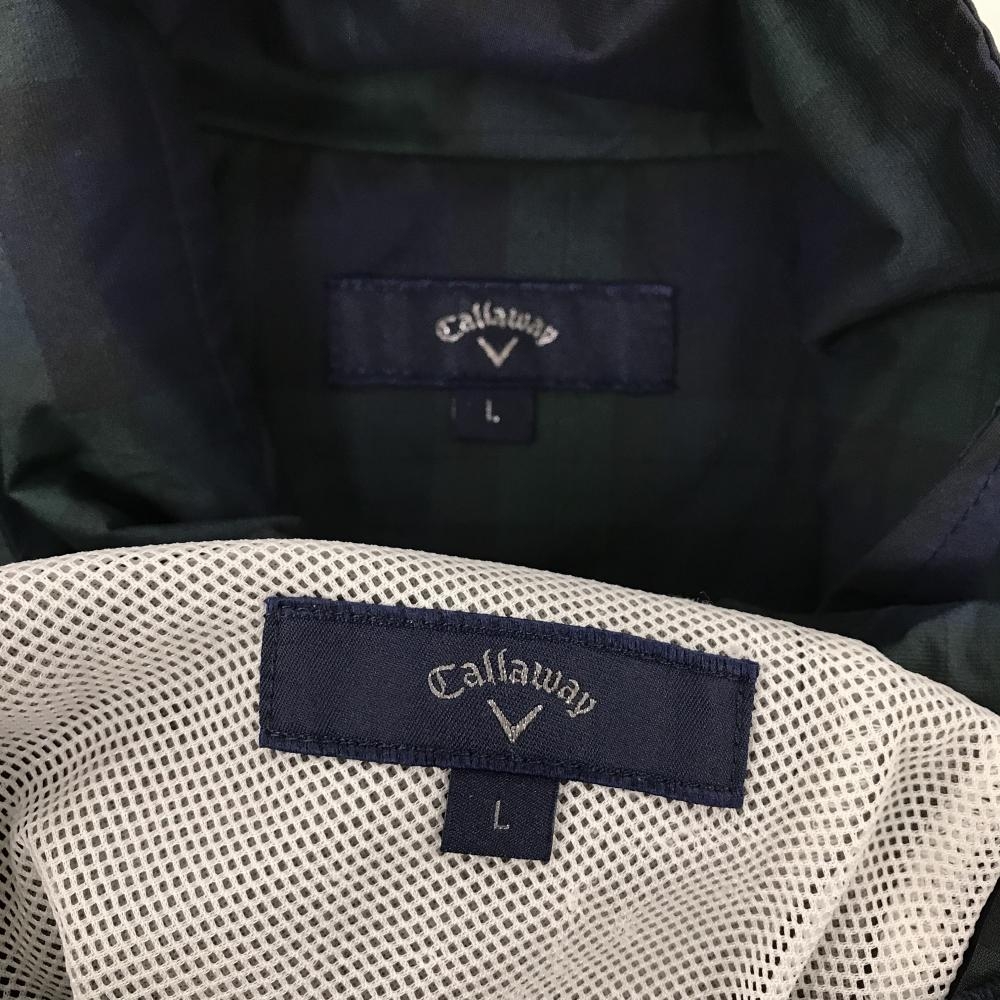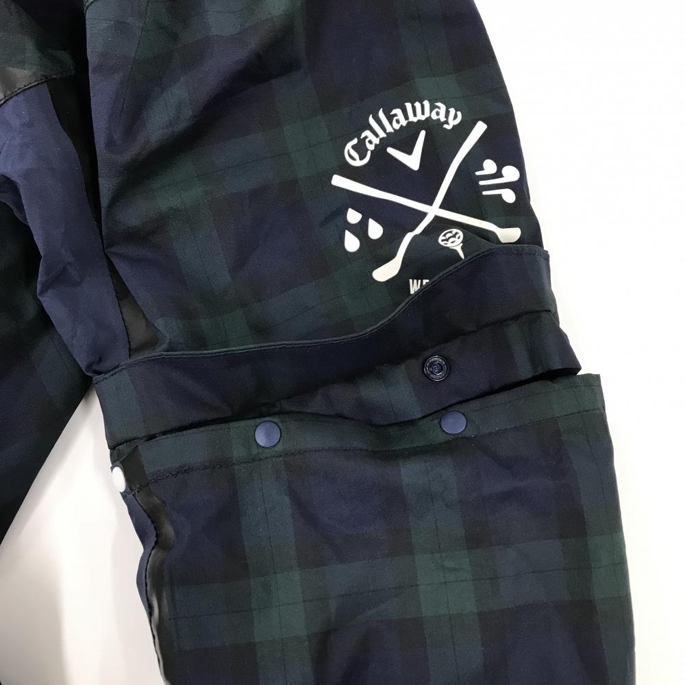 キャロウェイ レインウェア(2WAYジャケット×パンツ) ネイビー×グリーン チェック 袖着脱可 収納袋 メンズ L ゴルフウェア Callaway