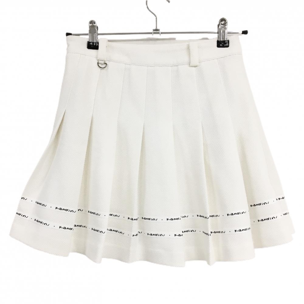 【超美品】カンディニ スカート 白 織生地 裾ロゴライン 内側インナーパンツ レディース S ゴルフウェア Kandini
