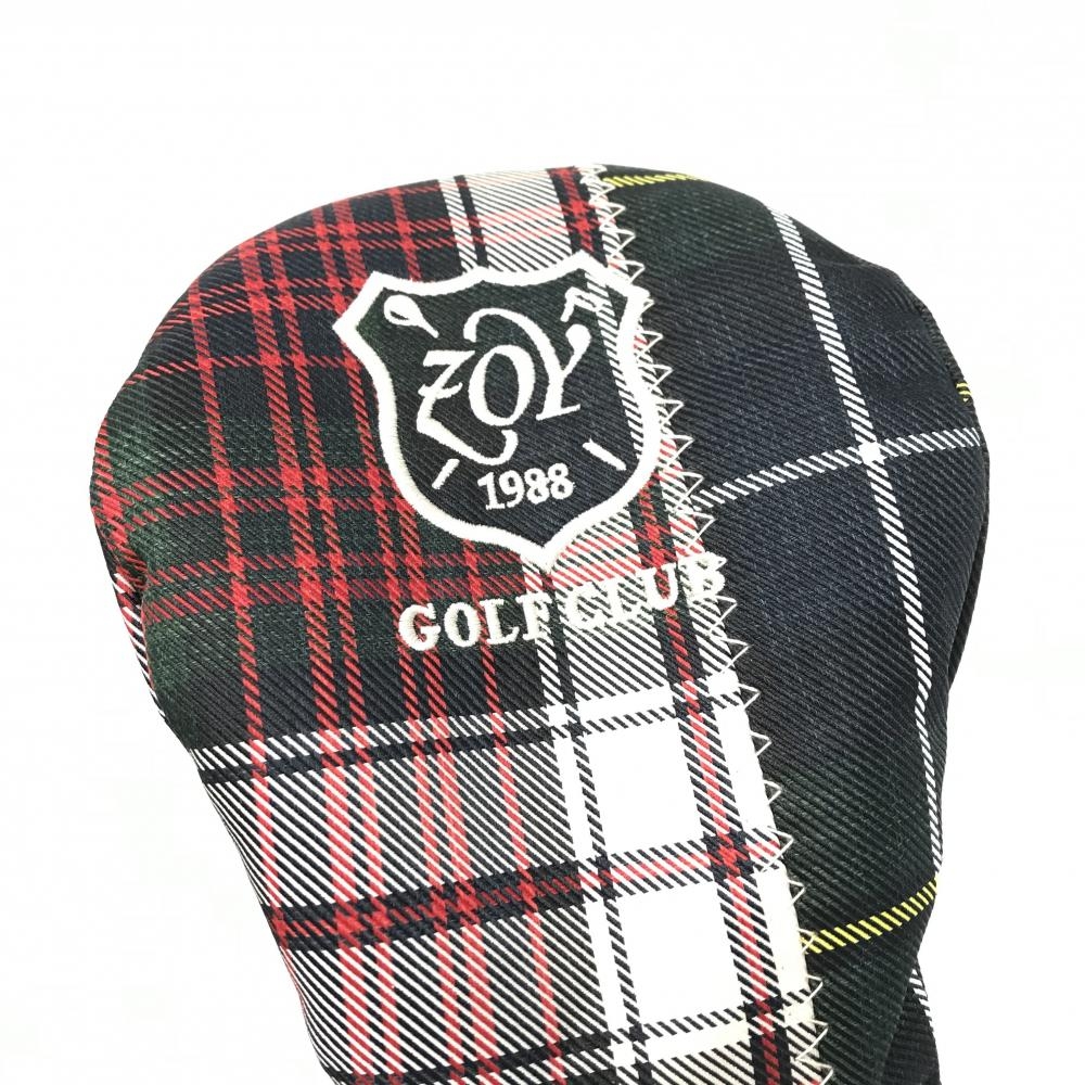 【新品】ゾーイ ヘッドカバー(DR) グリーン×ネイビー×レッド チェック ロゴ刺しゅう ドライバーゴルフ ZOY