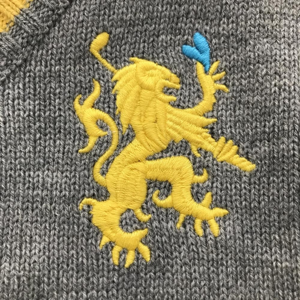【美品】ビバハート セーター グレー×イエロー Vネック 後身頃裏地 メンズ 48(M) ゴルフウェア VIVA HEART