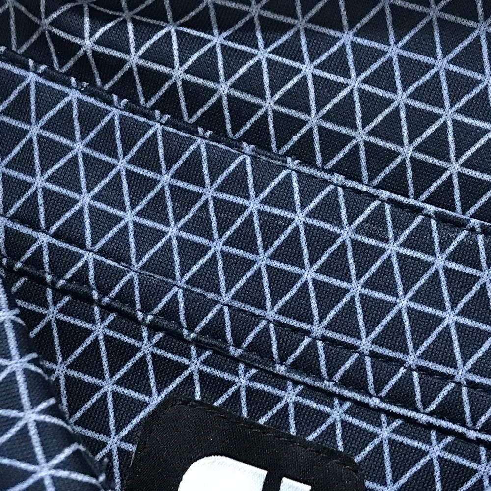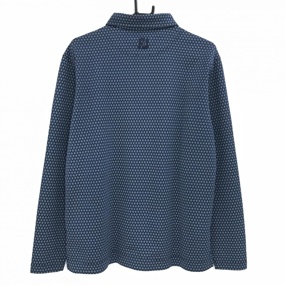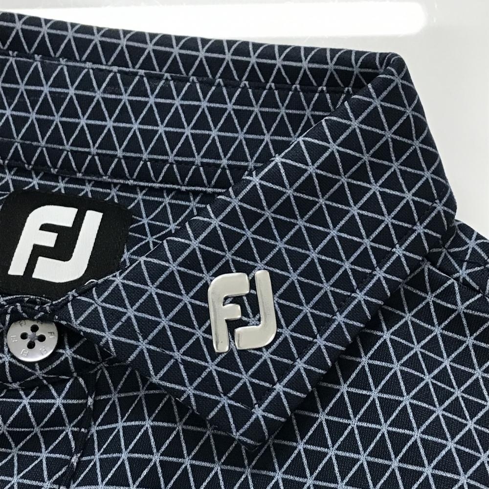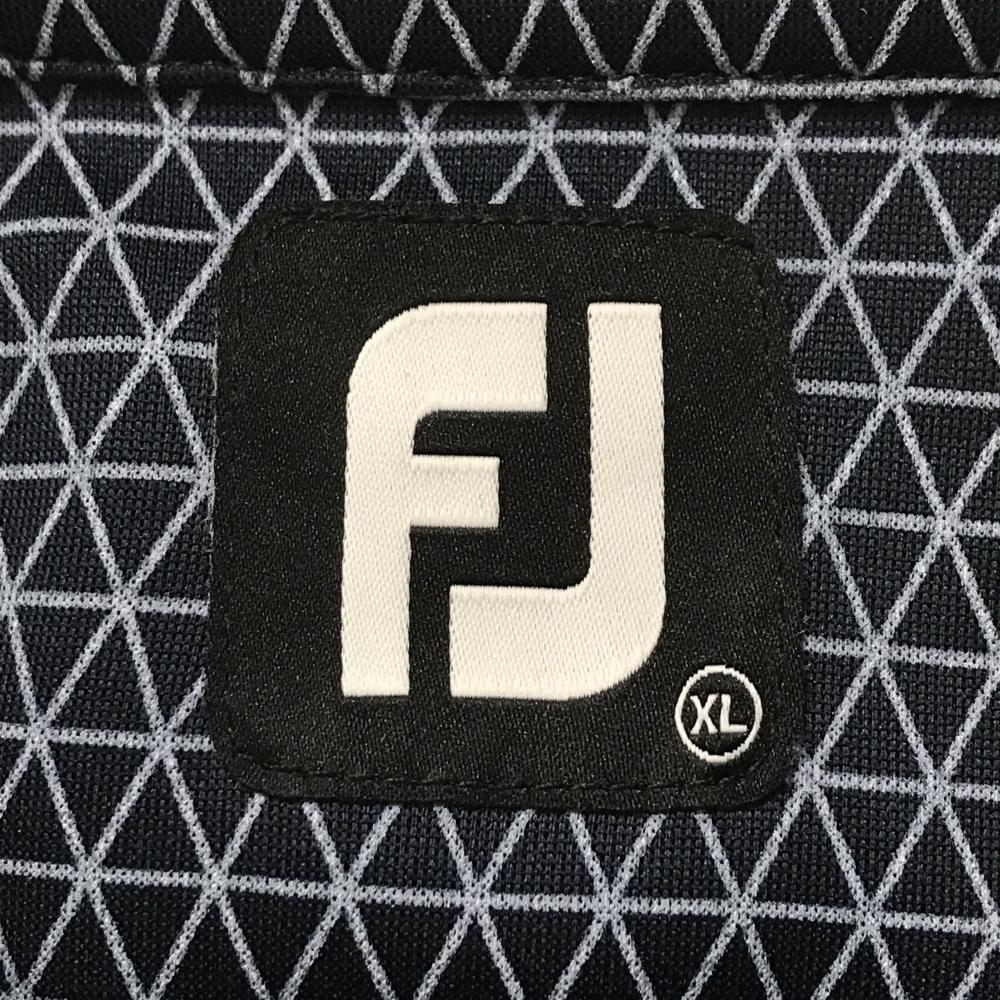 【美品】フットジョイ 長袖ポロシャツ ネイビー×ライトグレー 総柄 襟ロゴ メンズ XL ゴルフウェア FootJoy
