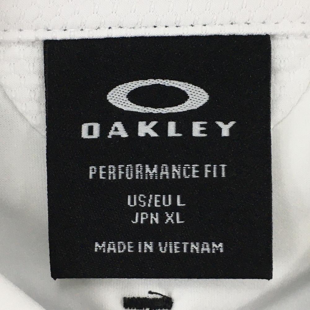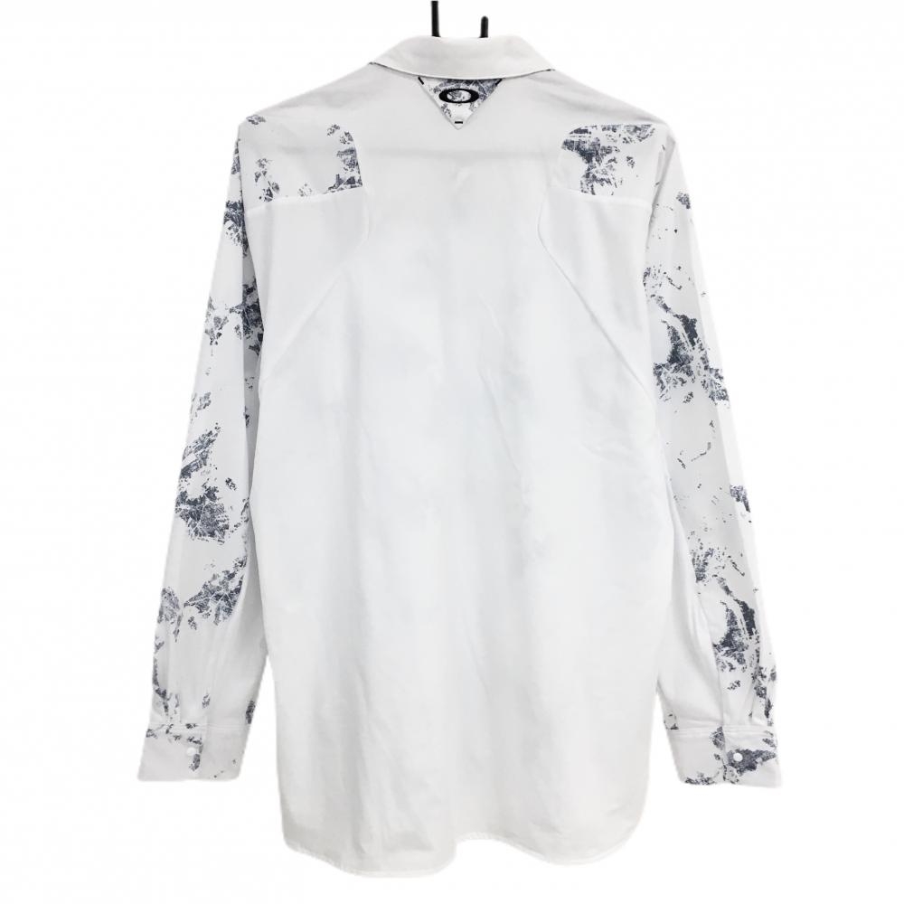 【超美品】オークリー 長袖シャツ 白×グレー 前総柄 ロゴ刺しゅう スナップボタン メンズ XL ゴルフウェア Oakley