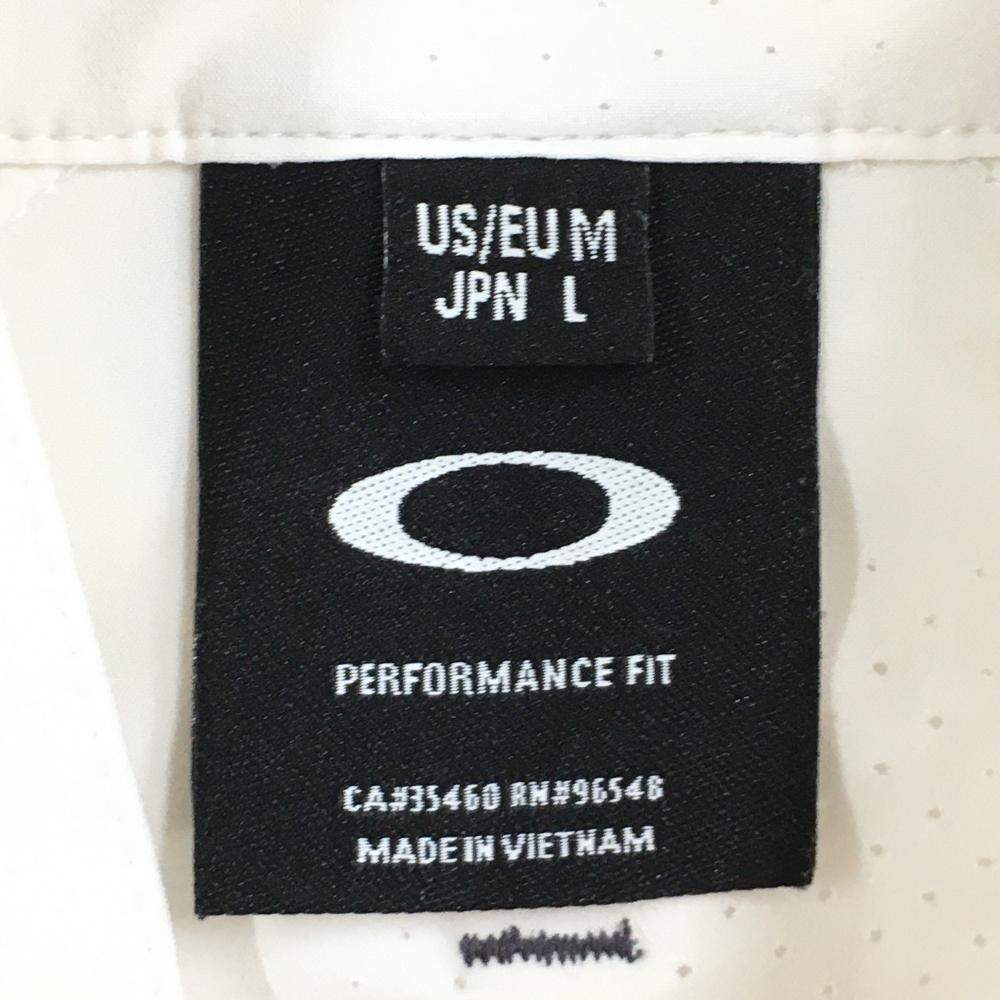 オークリー ジャケット 白 一部メッシュ調 ロゴグレー 裾ドローコード メンズ L ゴルフウェア Oakley