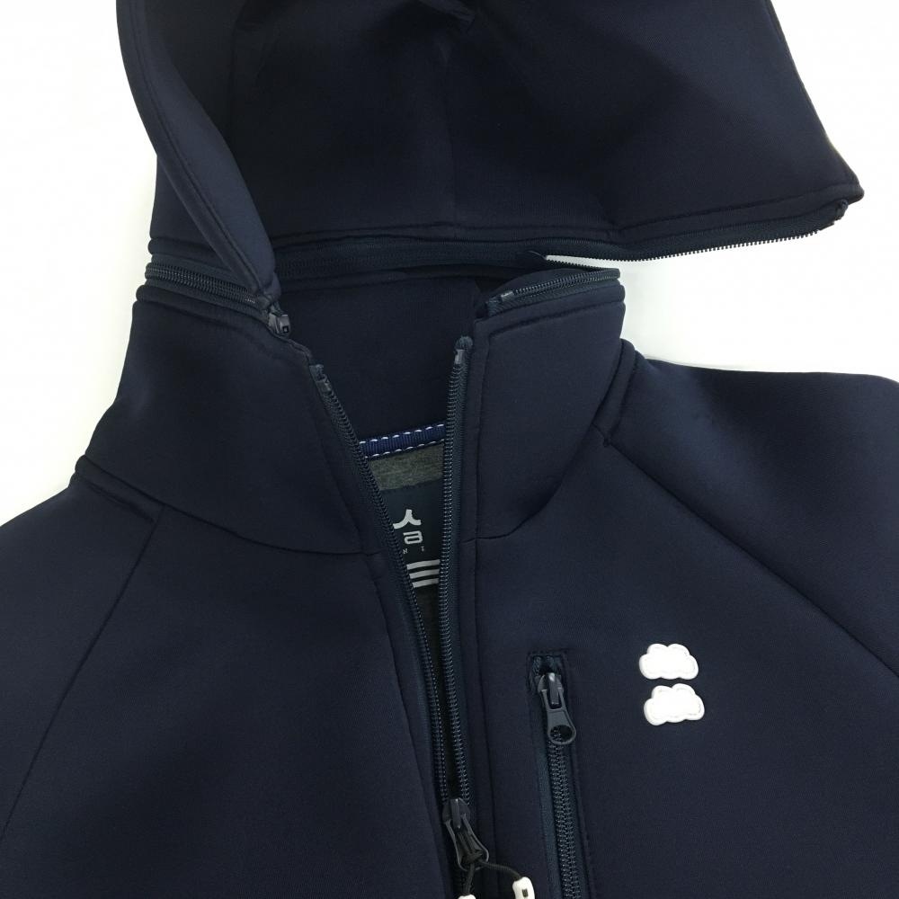 【超美品】ムータマリン ジップパーカー ネイビー バックロゴ つば付フード着脱可 レディース 0 ゴルフウェア muta