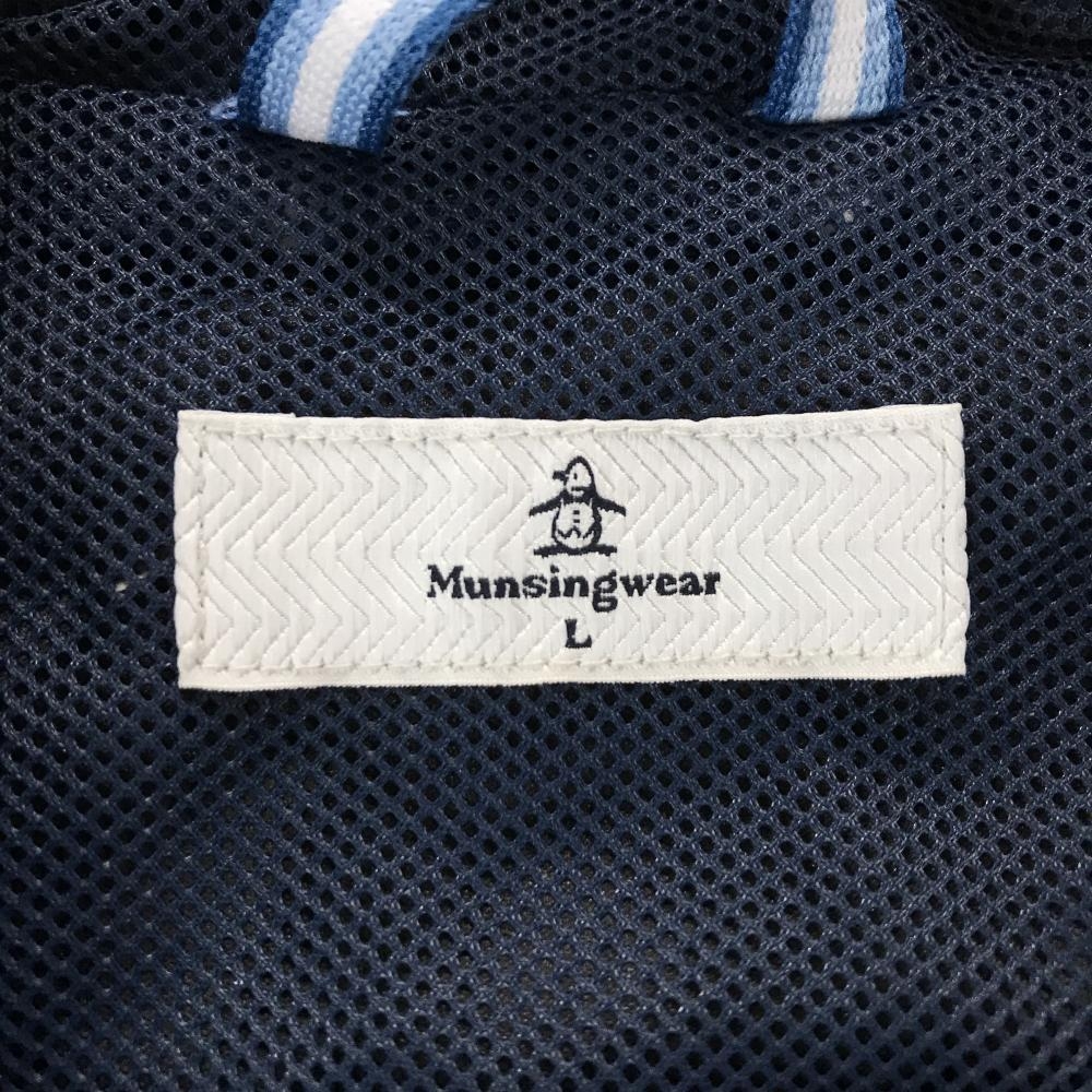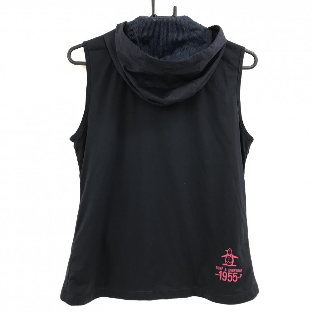 【超美品】マンシングウェア フード付アウターベスト ネイビー 裏地メッシュ 3ポケット レディース L ゴルフウェア Munsingwear