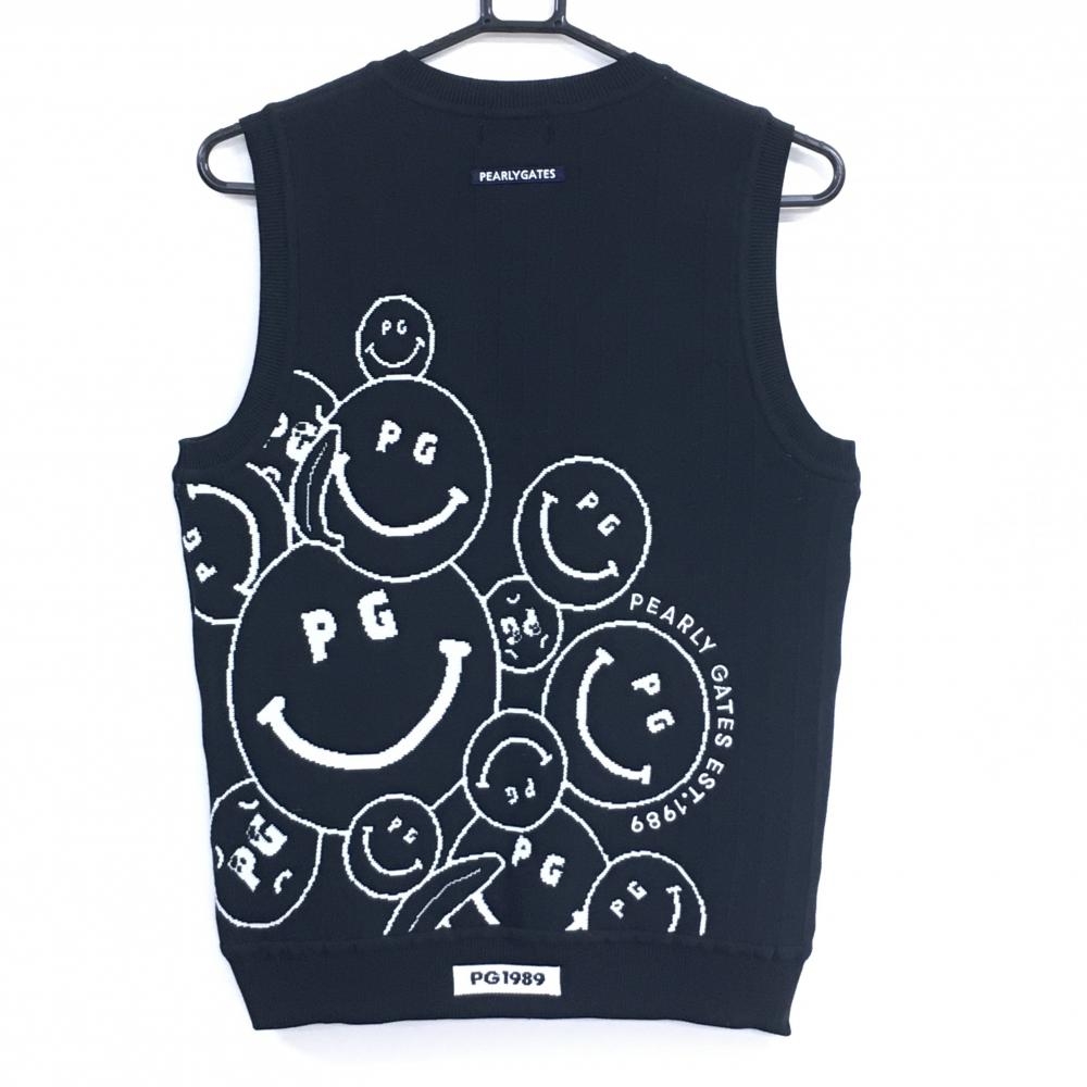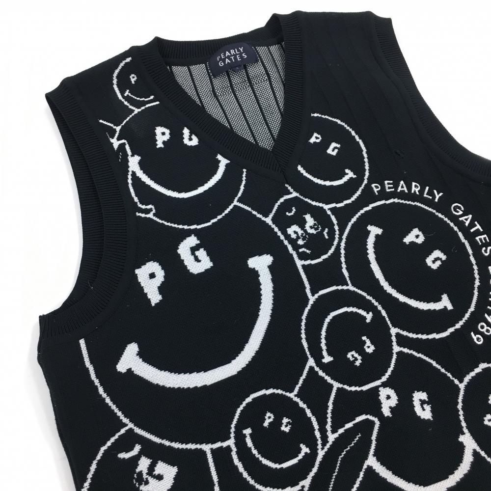 パーリーゲイツ ニットベスト ダークネイビー×白 ニコちゃん総柄 スマイル レディース 1(M) ゴルフウェア 2025年モデル PEARLY GATES