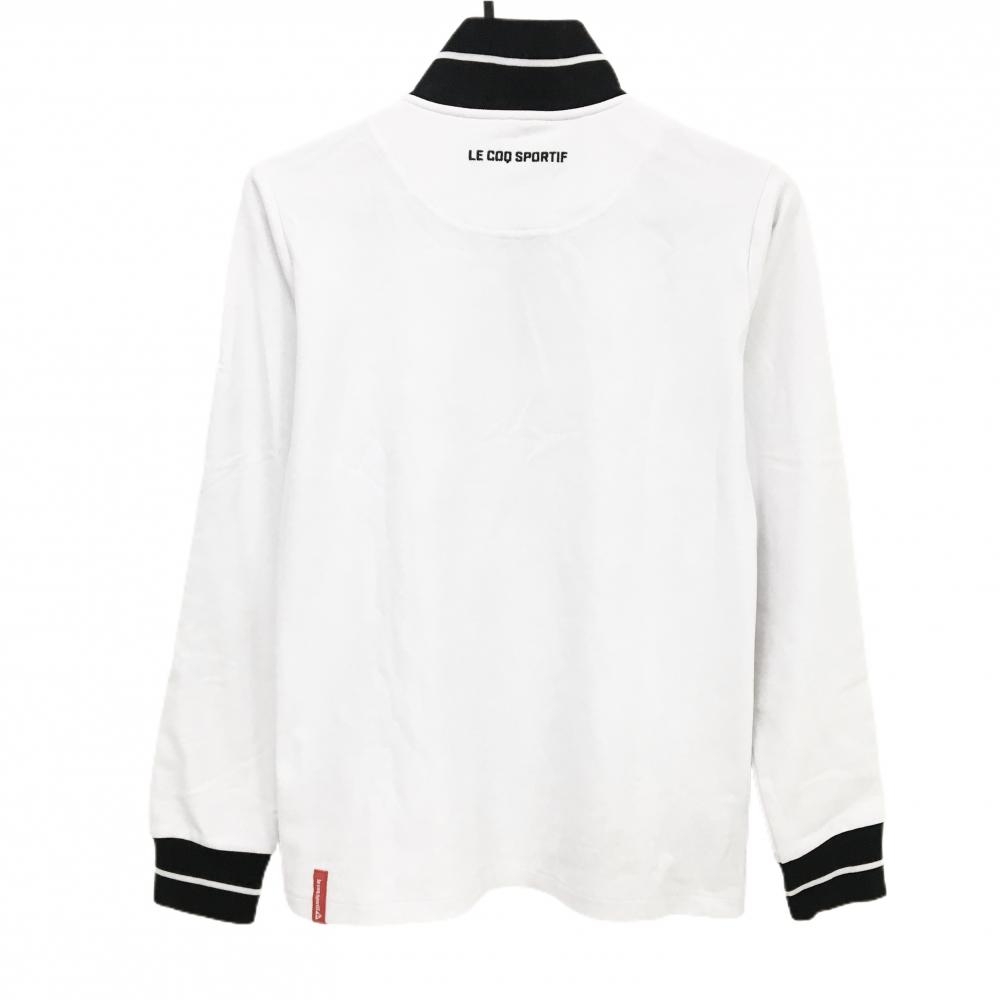 ルコック 長袖ハイネックシャツ 白×黒 袖ライン ロゴプリント ハーフジップ レディース LL ゴルフウェア le coq sportif