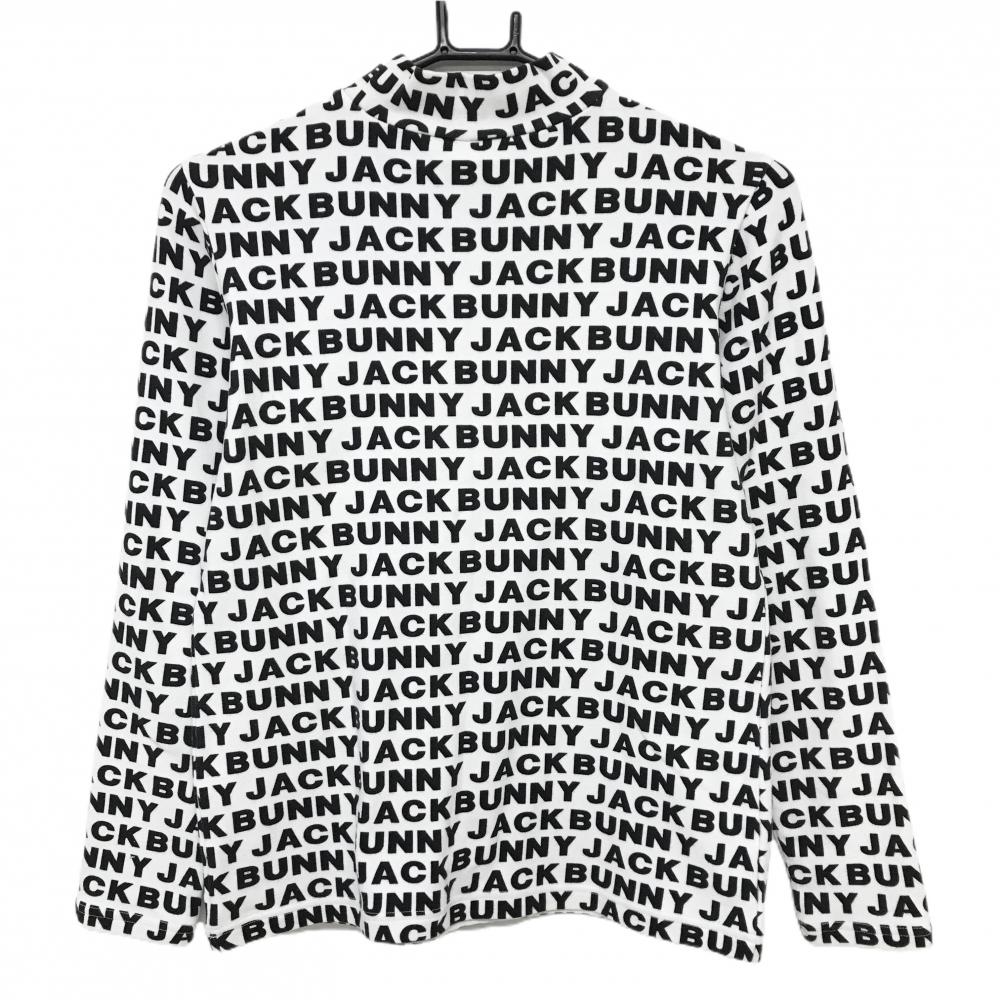 ジャックバニー 長袖ハイネックシャツ 白×黒 ロゴ総柄 レディース 2(L) ゴルフウェア Jack Bunny