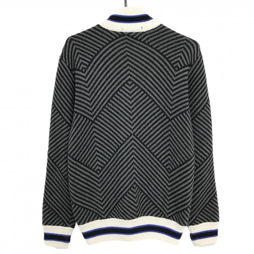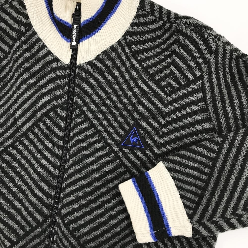 ルコックゴルフ ニットジャケット グレー×黒 総柄 ロゴワッペン ウール混 メンズ M ゴルフウェア le coq sportif